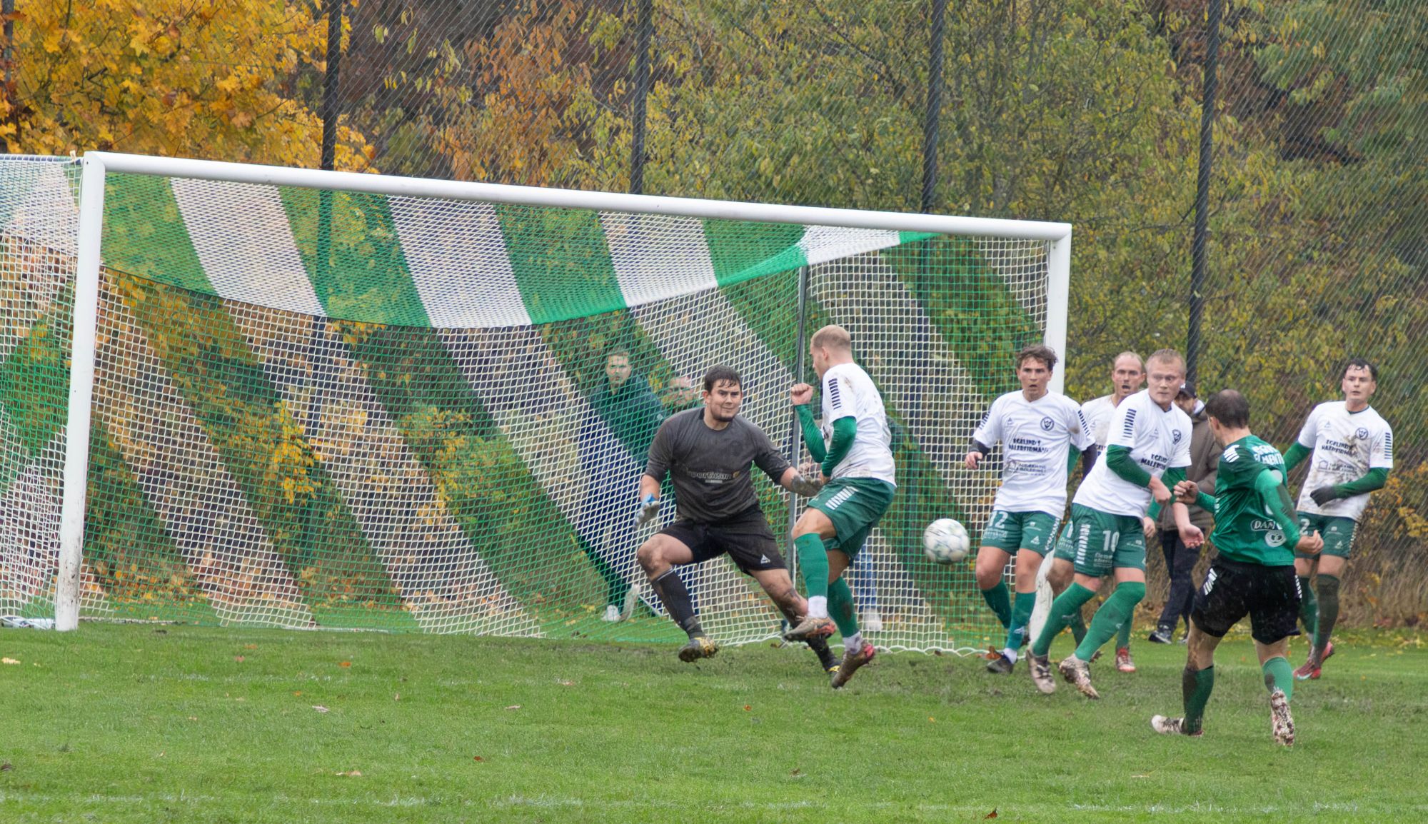 Efter pausen kom Give foran 1-0 på et flot mål af Gives anfører og en af banens mest markante spillere denne dag, anfører Magnus Bitsch, der tordnede bolden i mål med venstrekanonen fra 14 meter bag en forgæves sprællende Rask Mølle-keeper.