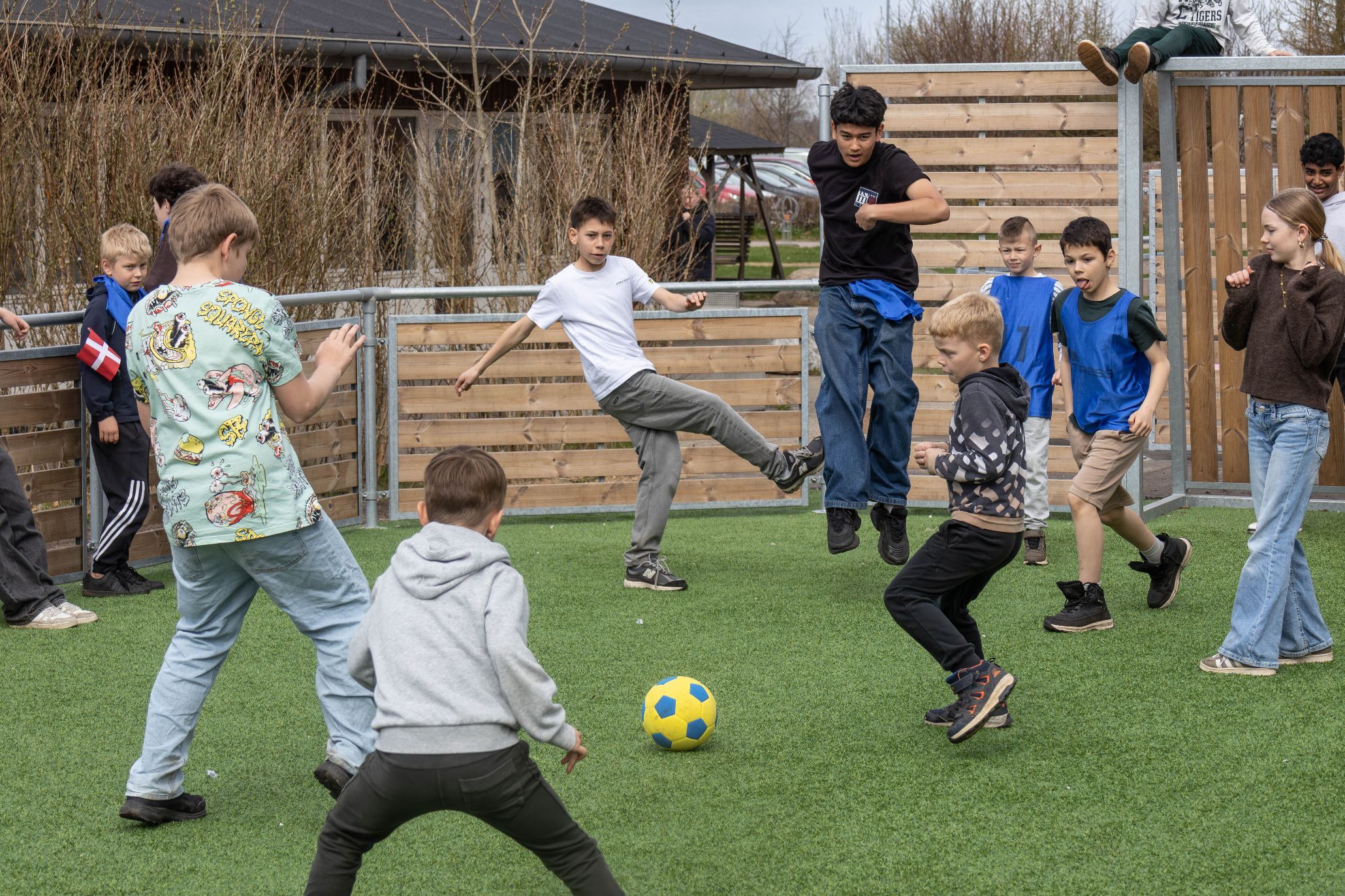 Efter talerne og snoreklipningen var der dømt ’landskamp’ på den ene multibane, hvor de unge mennesker gav den fuld bas med den lille runde. Foto: Jim Hoff