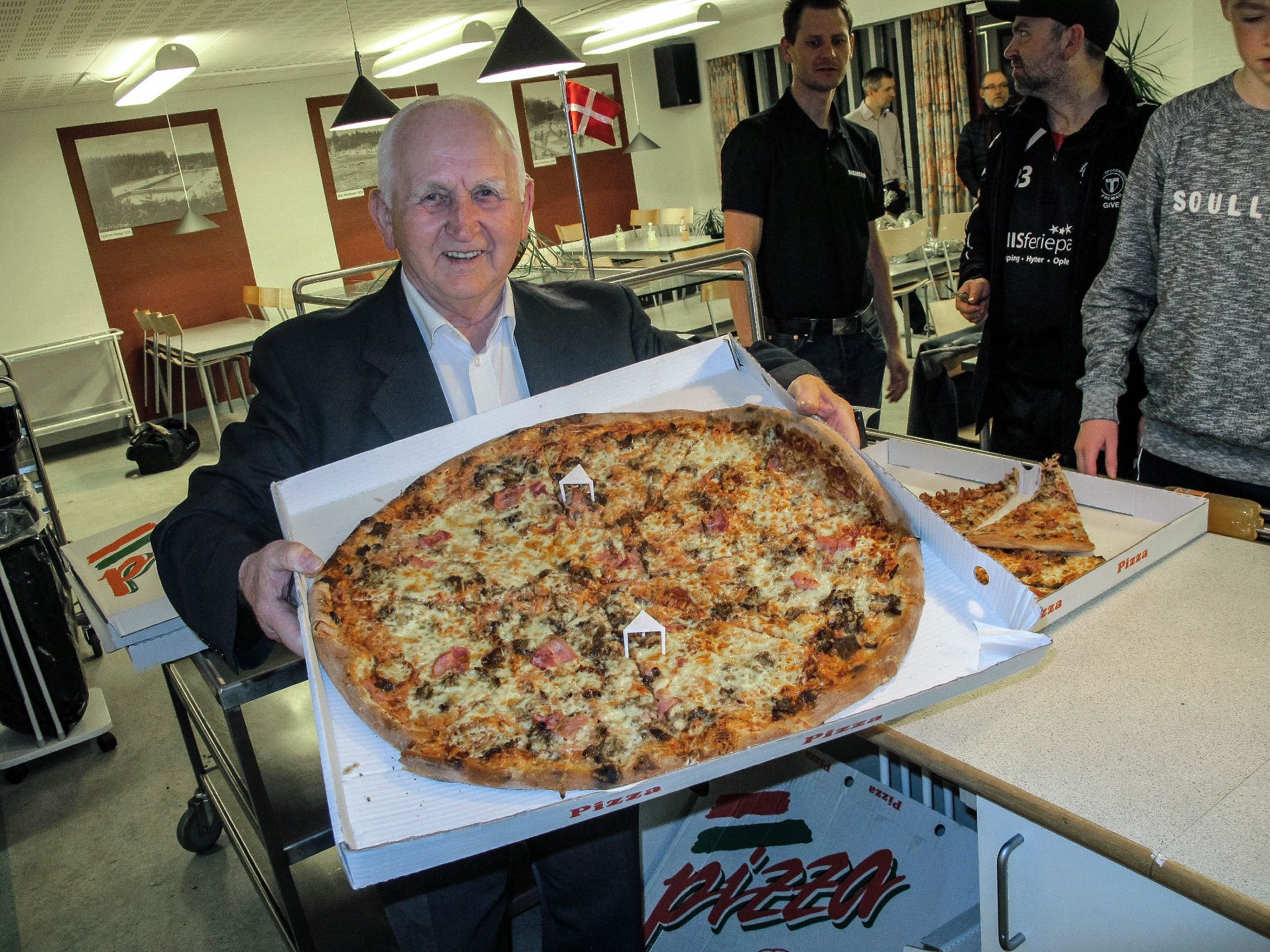 Svend Aage var spillernes mand - og når han kunne fejre fødselsdag, sørgede han altid for noget godt til gutterne. Her er der dømt pizza og kolde øl - og så var der fest. Foto: Jim Hoff