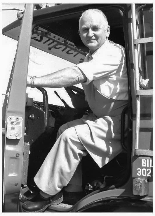 Det var som hele egnens vognmand, at Give og omegn lærte Svend Aage Bach at kende. Her i sin elskede Bedford. Privatfoto