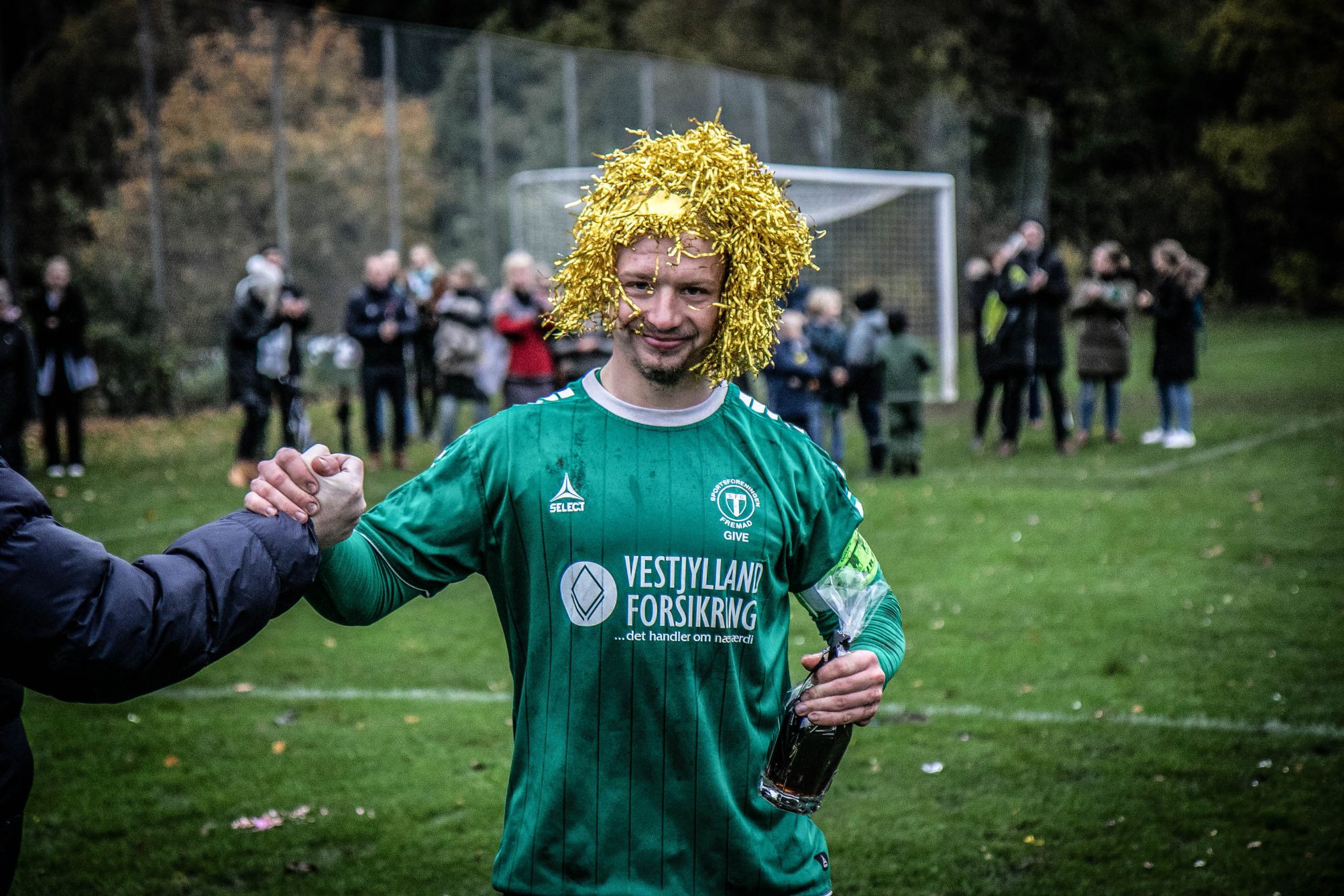 Peter Christensen har været med til at fejre oprykning med Give Fremad mange gange - har har været med på rejsen fra serie 2 op til jyllandsserie 1 og er dermed et stærkt symbol på klubbens flotte fremgang de seneste år. Foto: Jim Hoff