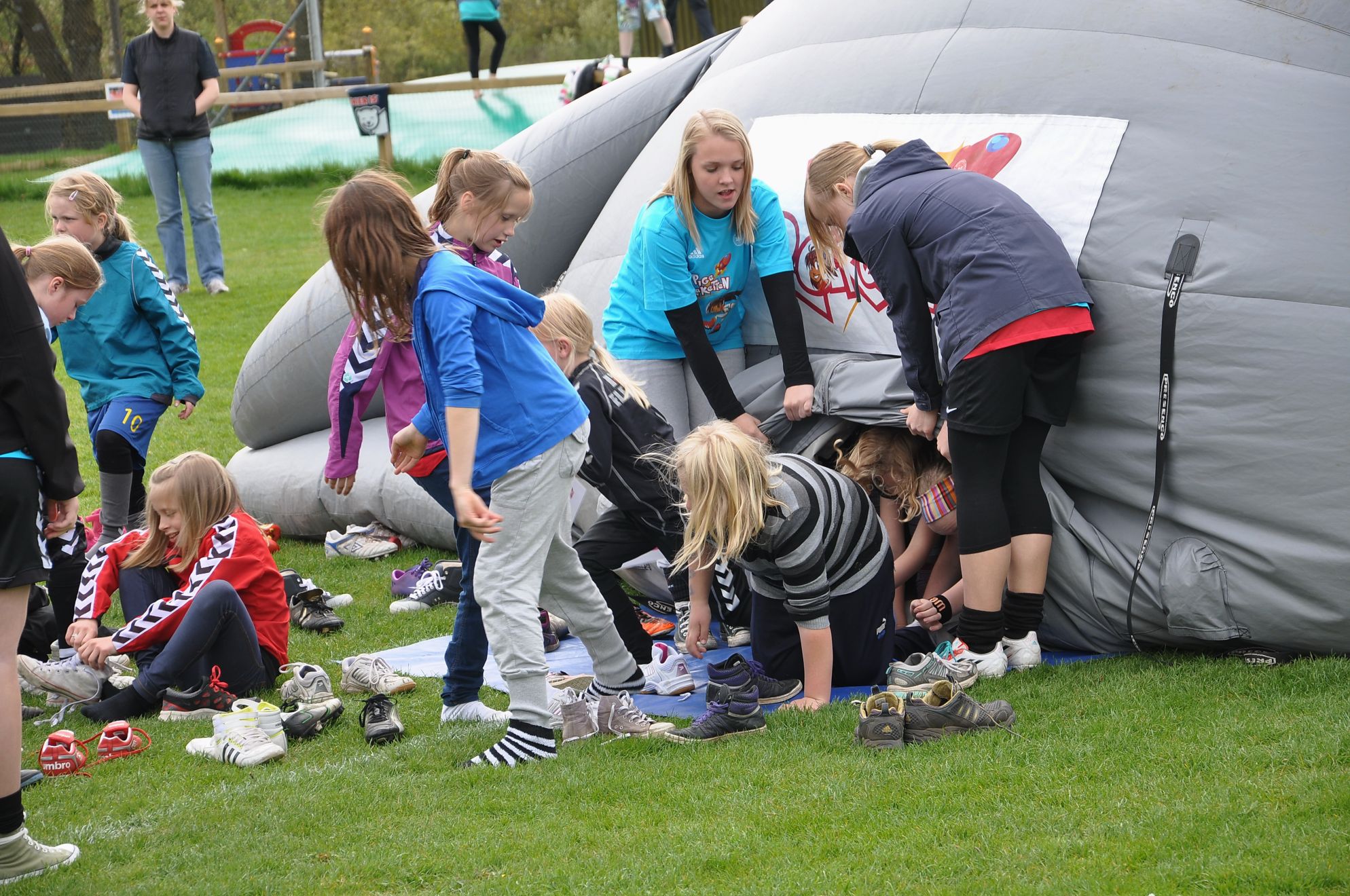 - Vi afholder det her fodboldarrangement, så vi kan få nogle flere tøser i gang med at spille fodbold i vores lille by. Jeg er er træner for U9, 10 og 11 pigerne, og det er virkelig sjovt. Jeg har fået 8 piger fra U14 til at komme og hjælpe på dagen. Jeg har 14 U9-10 piger, allerede spiller fodbold. Vi træner 17.00-18.00 mandag og torsdag, og vi har to hold, og vi vil gerne have flere yngre hold i gang i Give Fremad, fortæller Kenneth.