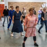 - Vi danser 3 gange om ugen her i gymnastiksalen på Thyregod Skole, vi har pt. 35 medlemmer, og der er helt sikkert plads til flere, så man skal endelig ikke holde sig tilbage. Om mandagen er det begynderne, der danser med Stephanie som instruktør. Tirsdag er det de øvede med Kirsten som instruktør, og onsdag er det så det hold, vi med glimt i øjet kalder ’stræberne’, der giver den gas med Hans Jørgen ved roret, altså de meget øvede. Men man er ikke låst, så man må hjertens gerne deltage på alle holdene, fortæller Vibeke og Rikke.