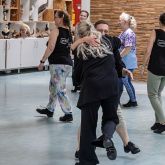 Alt imens det vælter ind med glade og forventningsfulde linedancere, der i den grad er klar til jubilæumsfest, fortæller Rikke og Vibeke, at danserne fra ’Crazy Feet’ af og til er ude til forskellige dansestævner, hvor man mødes med linedancere fra hele landet – og naturligvis har det festligt. Og så skal vi også lige runde forskellen på line dance og square dance.
