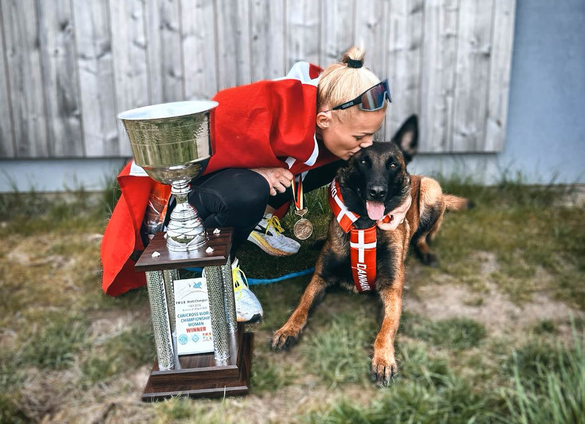- Jeg er jo sportspige helt ind i marven, så nu ville jeg prøve at komme op på en højere hylde og virkelig præstere noget sammen med Kenobi, og her faldt jeg så over sporten canicross. Jeg begyndte at træne målrettet med Kenobi, og det gav så pote ved VM, hvor Kenobi og jeg tog VM titlen med hjem som den første dansker.