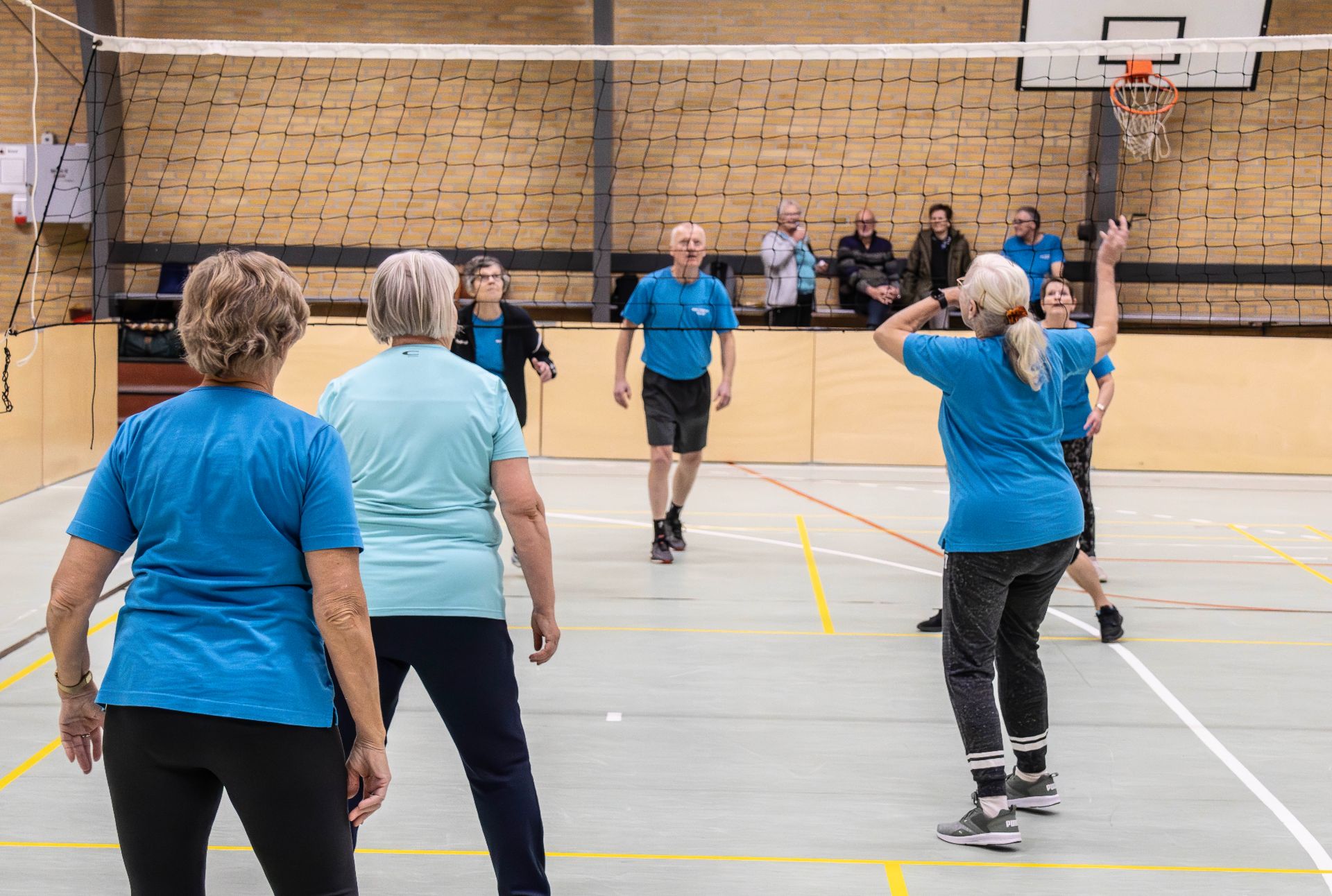 Der spilles også 'bedstevolley', og også her er der godt gang i sagerne. Foto: Jim Hoff