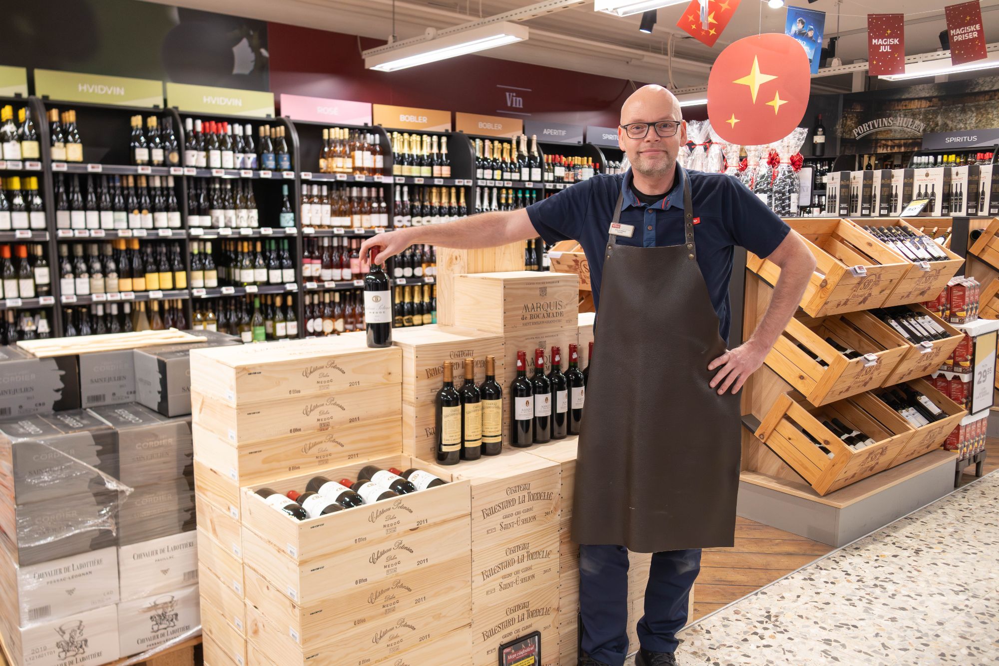 DET GODE BUTIKSLIV: Brugsens leder af vinafdelingen, Michael Sørensen, er igen klar med en af Brugsens populære vinfestivaler, når Brugsen torsdag den 4. december åbner op for en decideret Julevinsfestival.
