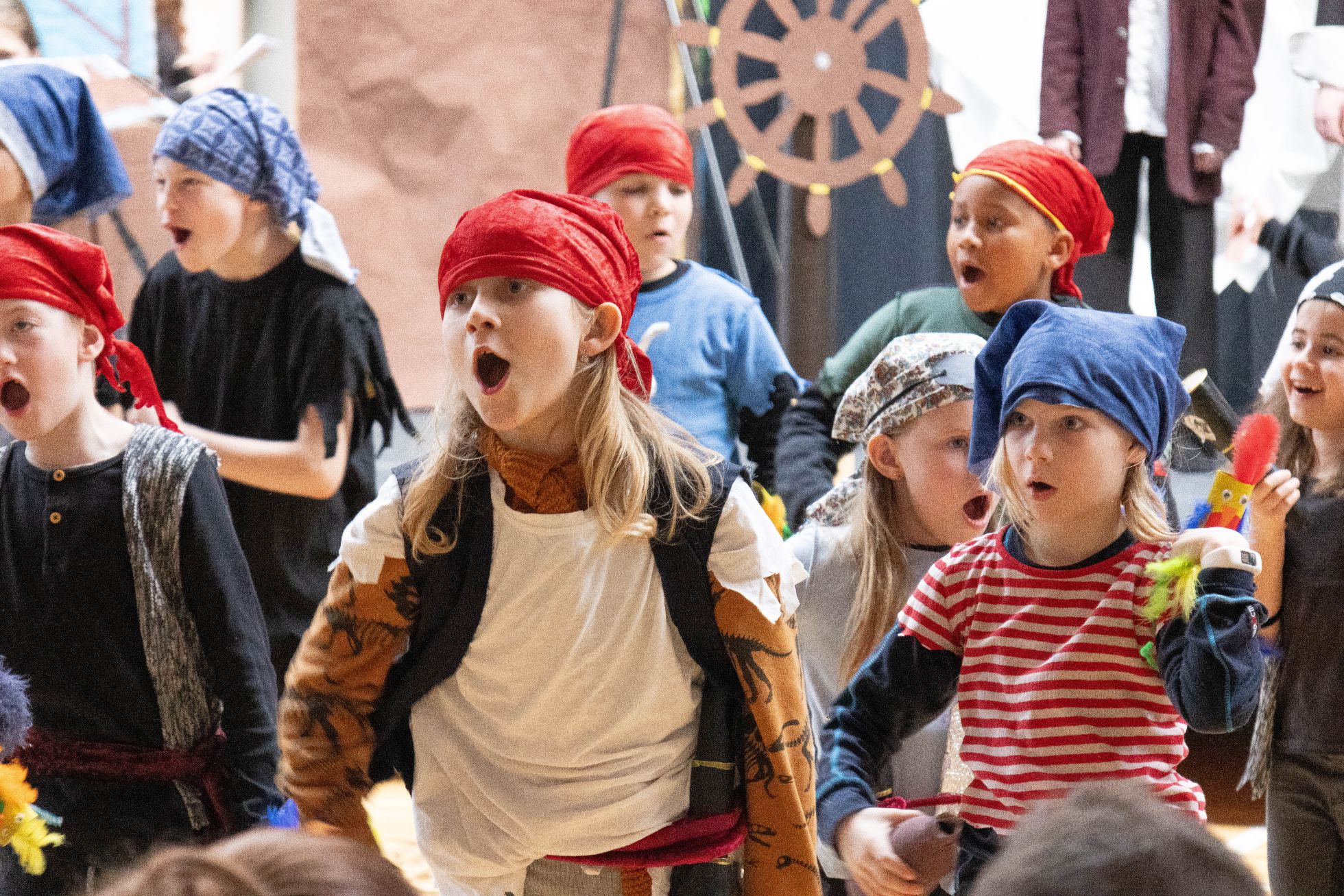 I 1883 udgave Robert Louise Stevenson romanen ‘Skatteøen’, og det gik hen og blev en af de mest læste og dramatiserede bøger i historien. I uge 12 fik fortællingen om Jim Hawkins og de drabelige pirater og etbenede sømænd med papegøjer på skulderen så nyt liv, da eleverne på Hedegård Friskole syngende og dansende drog på skattejagt.