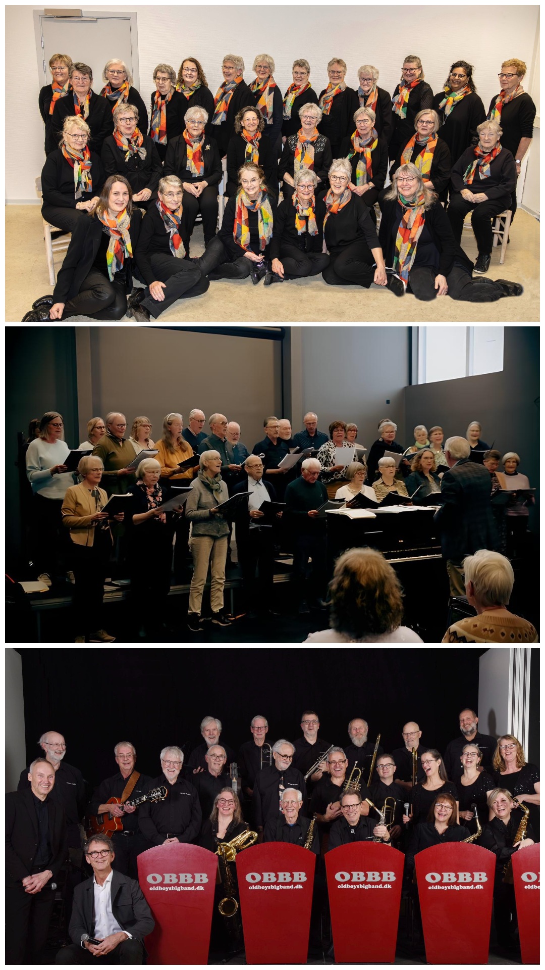 Her har vi så de to kor og big bandet, der optræder på Museum Give den 7. marts.Fotocollage: Jim Hoff