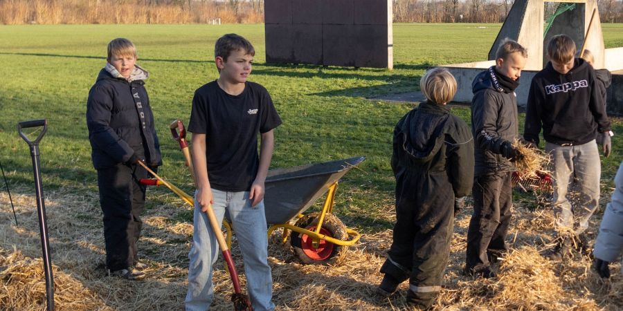 Dermed skulle de store pædagogiske overskrifter være på plads, og tilbage til selve åbningsdagen, hvor der var indbudt til officiel indvielse klokken 13.00, havde børnene i 4. årgang haft travlt hele formiddagen med at sprede halmindpakket hestegødning ud over de mange nye planter, der fordeler sig på et areal på 100 m2, og som ligger lige ved siden af multibanen ude på skolens boldbane.