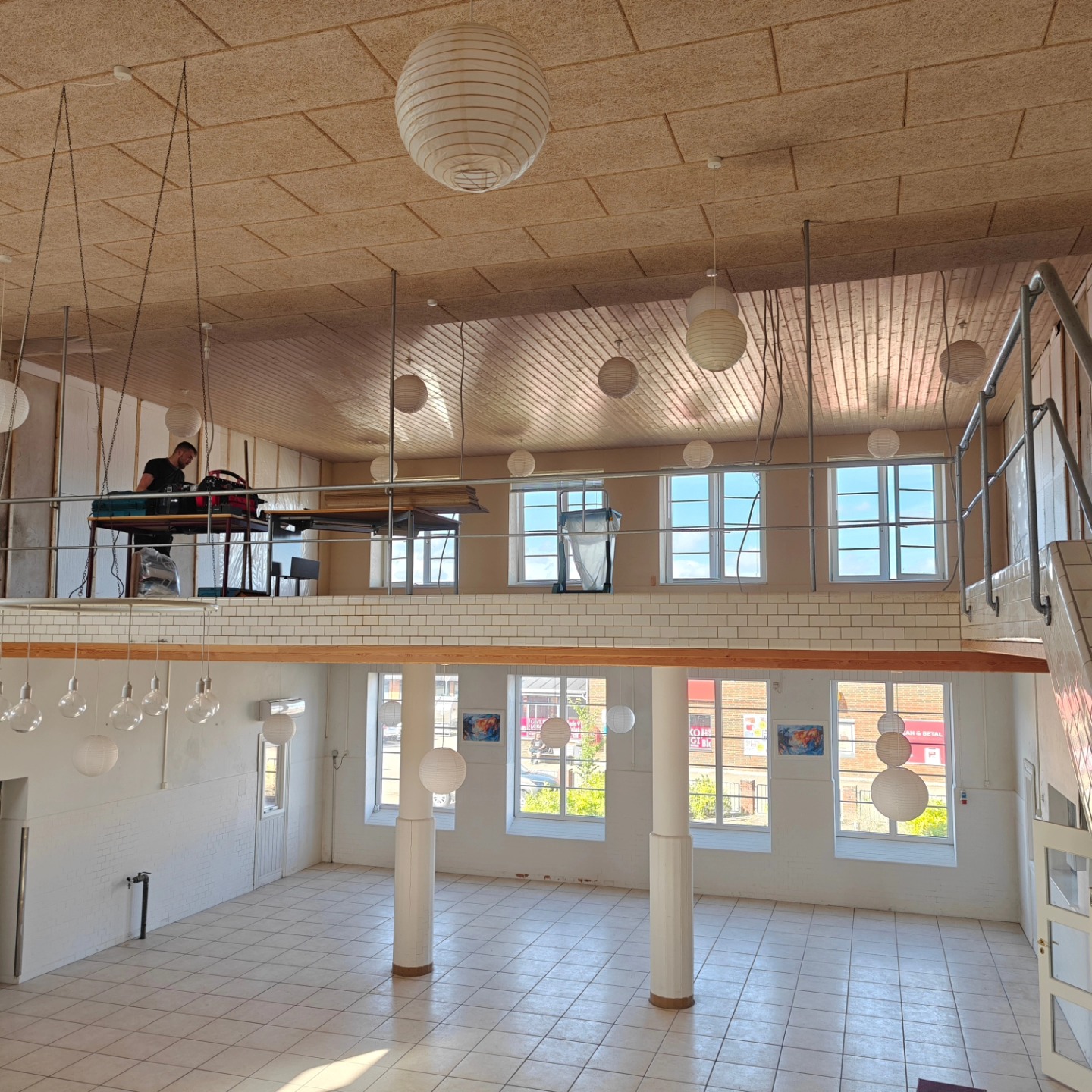 Det er her i disse lokaler, at der skal laves en koncertsal med scene, og snart vil der også blive monteret en balkon på 1. salen. Privatfoto