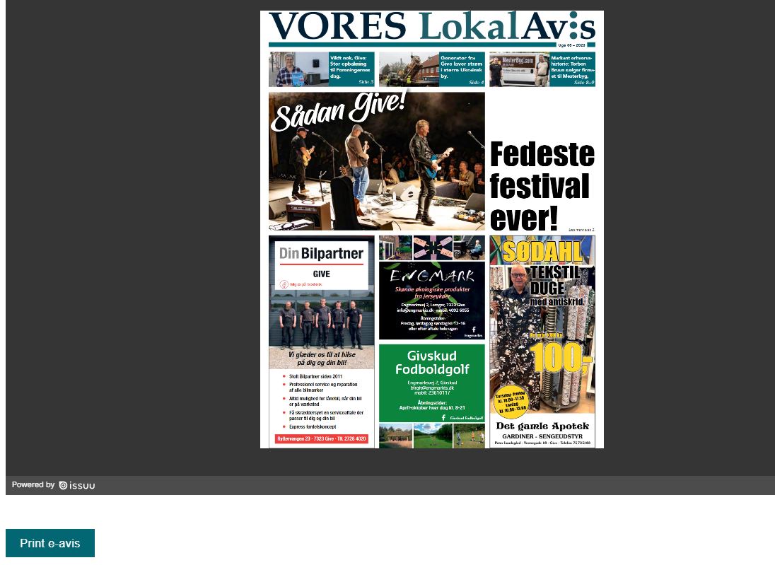 VORRES LOKALAVIS: Fra og med sidste uges udgave af vores e-avis, har vi fået implementeret en funktion, der nu betyder, at man fremover kan printe sider ud fra e-avisen. Når man åbner e-avisen, vil der nede i venstre hjørne poppe en knap ud, der hedder ”Print E-Avis.