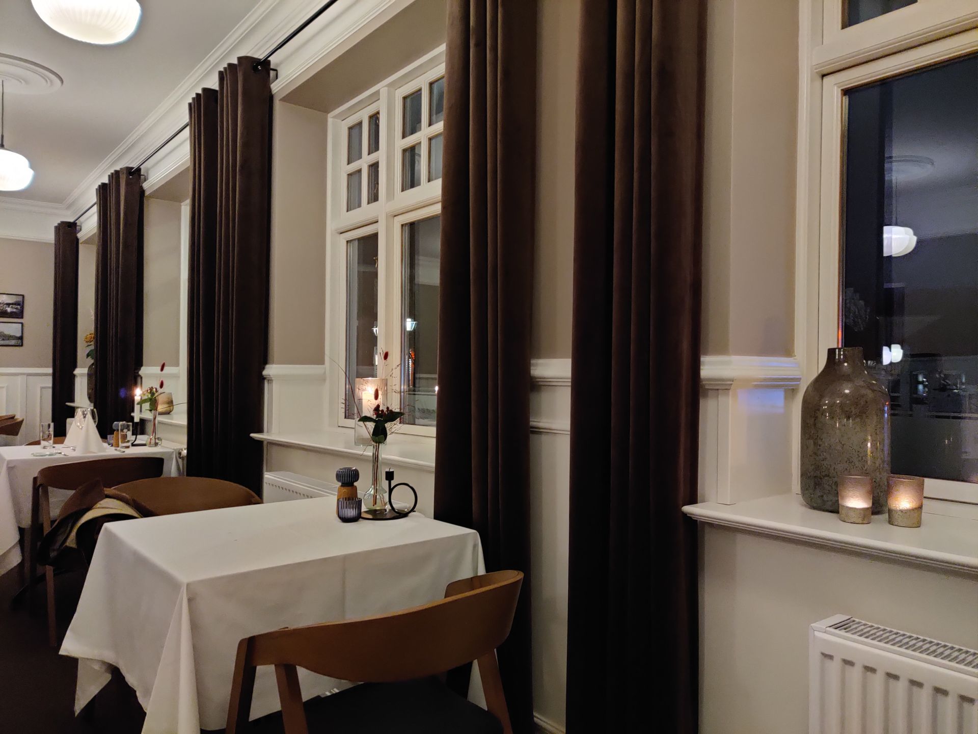 Det er Kleis Gardiner, der har leveret stofgardinerne til restauranten på Diagonalkroen i Give. Privatfoto