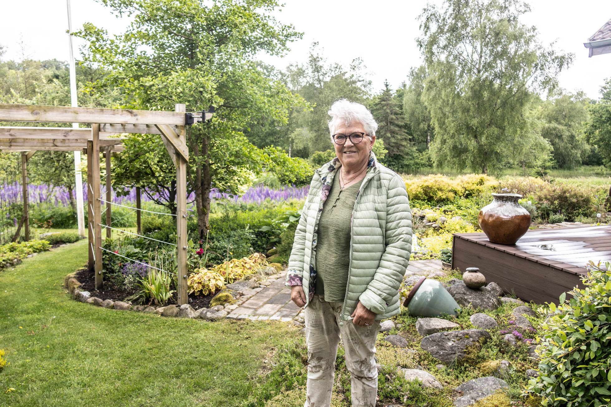 Tove er et gennemført naturmenneske, og hun elsker da osgå den 3000 kvadratmeter store naturhave, som hende og Niels kan gå og pusle i. Foto: Jim Hoff