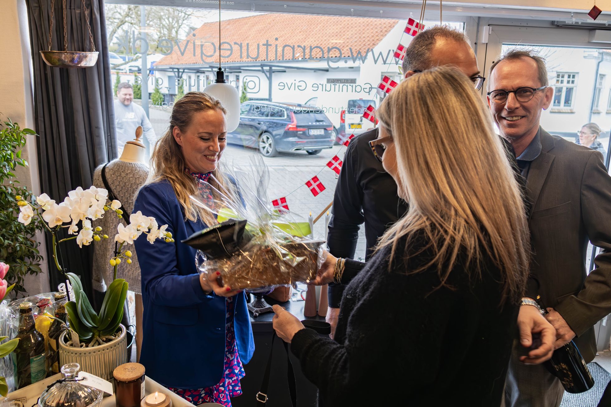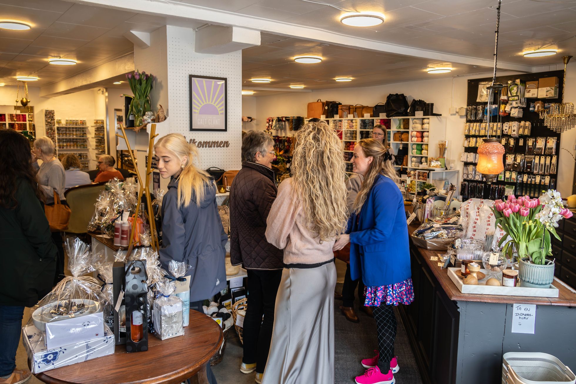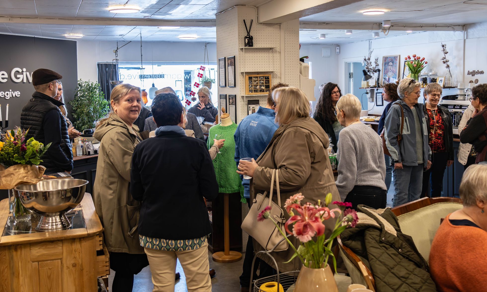 Lørdag den 27. april blev der afholdt goddag-farvel reception hos Garnkæret-Garniture på Torvet i Give. Det blev noget af et tilløbsstykke, hvor folk myldrede ind fra klokken 13.00 og flere timer frem.