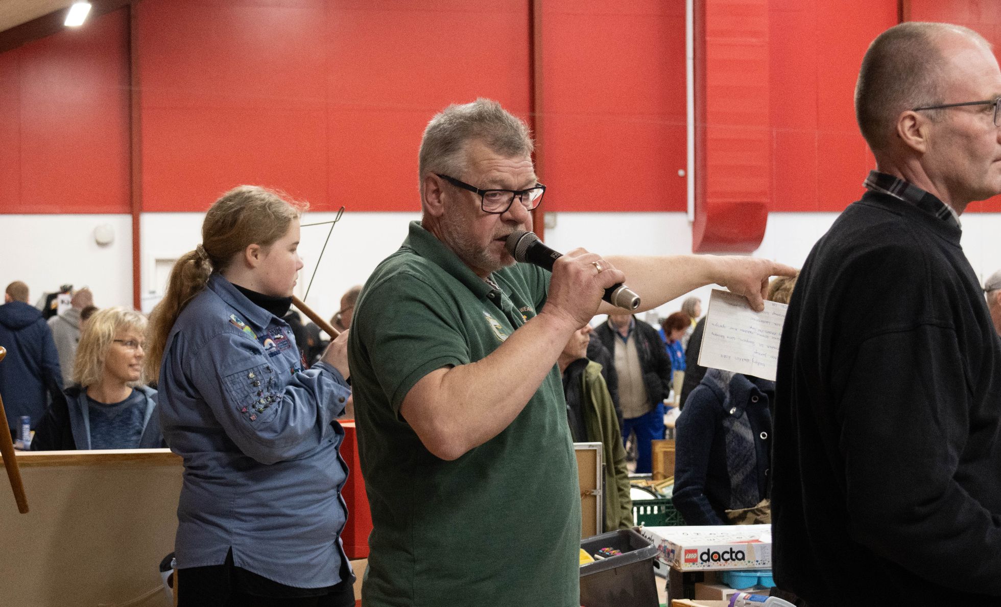 -Selve auktionen indbragte i alt 15.000 kroner, og her var det et stort Legosæt, der toppede skalaen og gik til hele 4.000 kroner, mens næstbedste pris var en sofa til 2700 kroner. Bent Ivan gør det jo rigtig godt som auktionarius, og han er godt til at få folk med, så fint at han lige sprang til her, siger Dorte.
