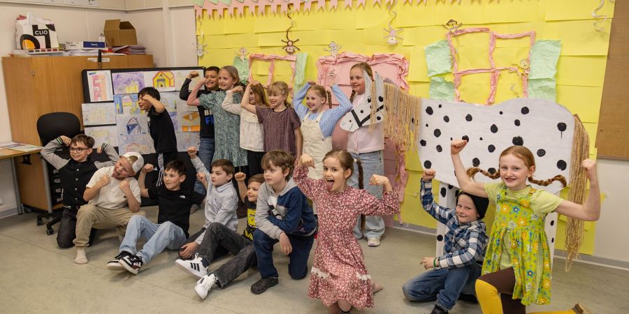 Foto: Skolen havde arbejdet med temaet ”Fantasirejsen” hen over emneugen, og her er vi taget en tur med ind i Astrid Lindgrens børnevenlige univers i 2. årgang. Foto: Jim Hoff