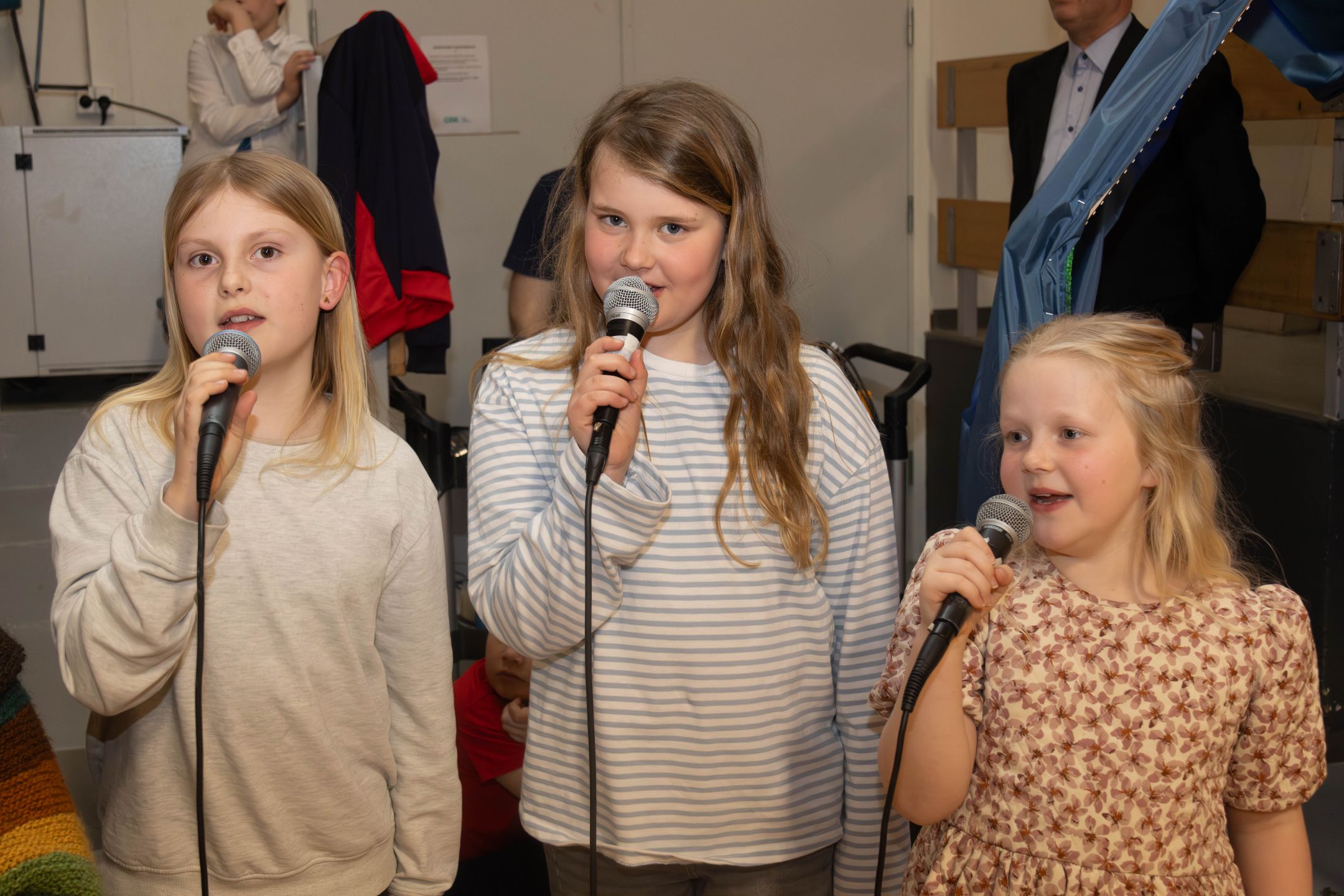 Disse tre herlige piger udgjorde koret i lærernes band, da der blev spillet op til sang og dans i hallen - og de gjorde det flot. Foto: Jim Hoff