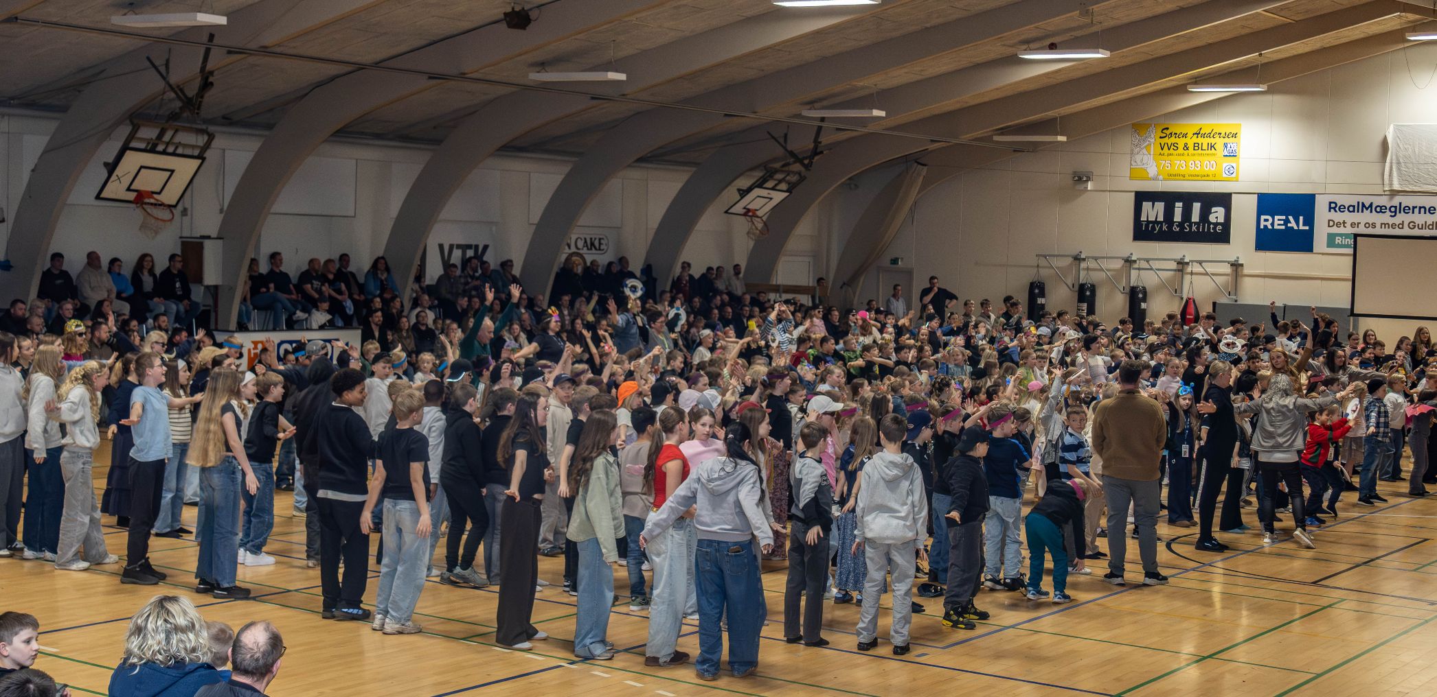 Ikærhallen var fyldt til bristepunktet af såvel elever som forældre, da dette års skolefest blev skudt i gang. Foto: Jim Hoff