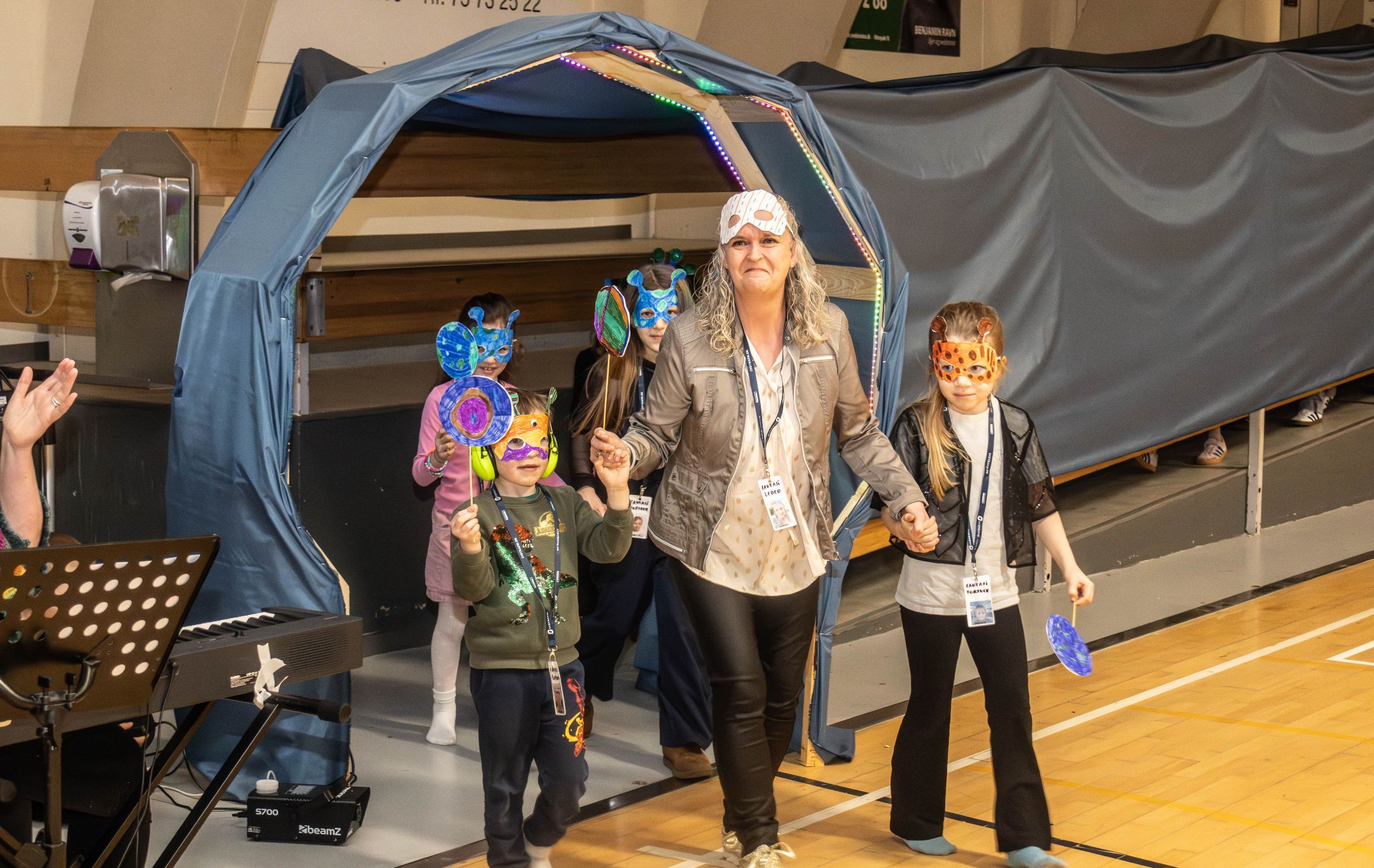 Der var indmarch ned til hallen gennem en Fantasy-portal, og her dukkede eleverne op i alle afskygninger og udklædninger. Foto: Jim Hoff