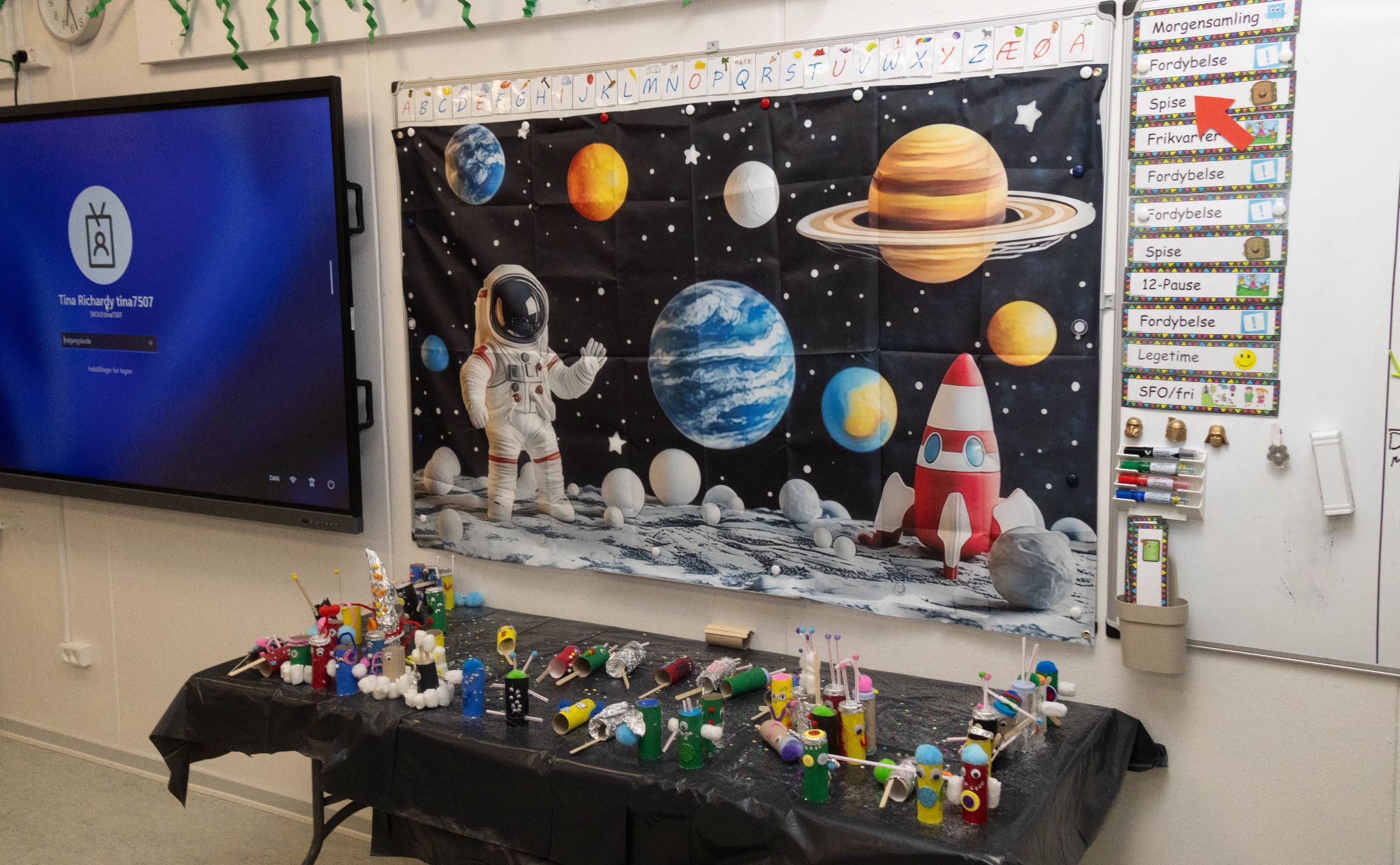 Eleverne kom vidt omkring på deres fantasirejser – her er vi ude i verdensrummet med børnehaveklasserne. Foto: Jim Hoff