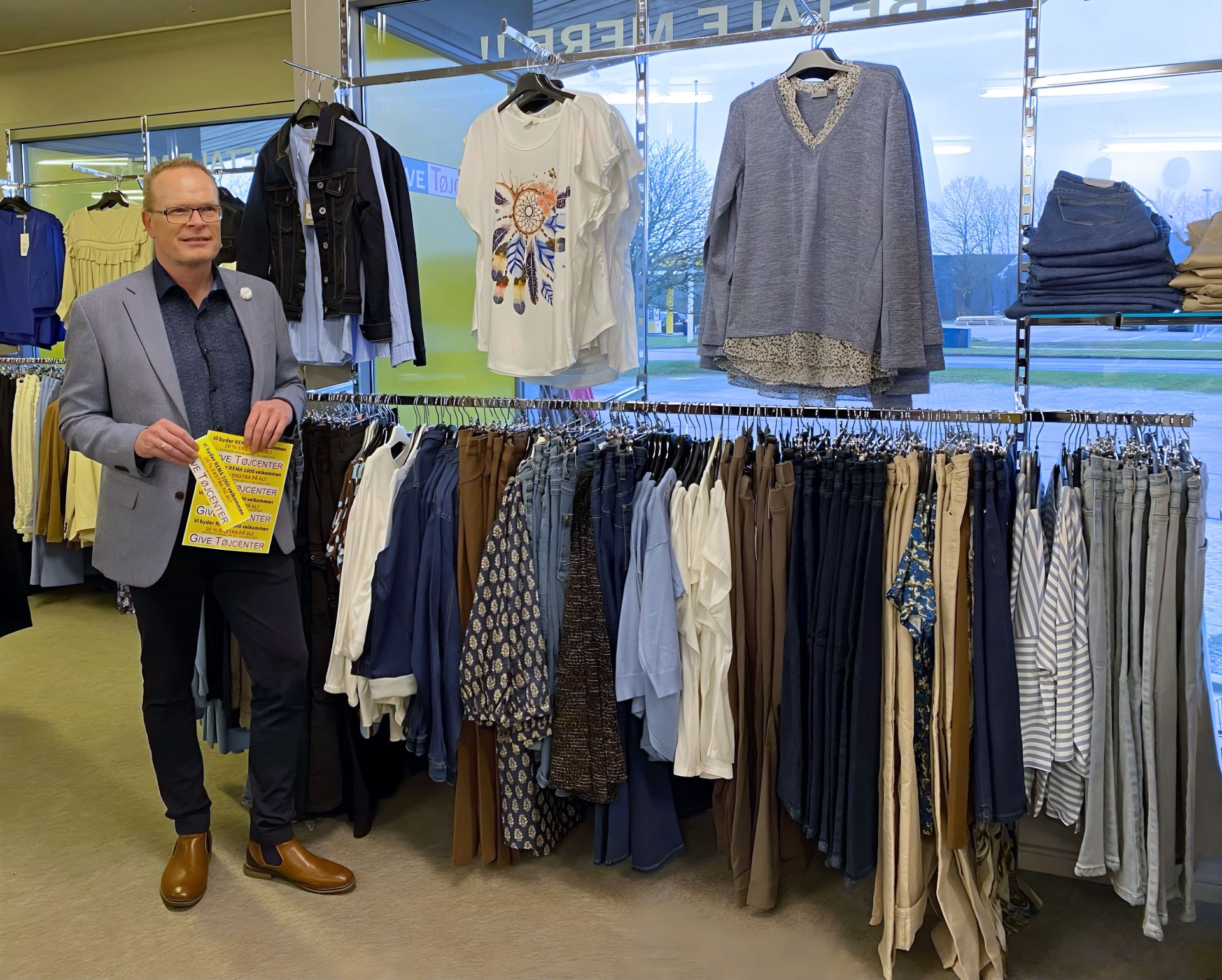 BUTIKSLIV: Give Tøjcenter er mere end klar til at byde sin nye butiksnabo velkommen, når Rema 1000 åbner på Hjortsvangen den 21. marts klokken 8.00. Indehaver af tøjcentret, Flemming Gejl, har siden han hørte, at den nu tidligere Aldi-butik skulle overgå til Rema 1000 set frem til det nye frugtbare naboskab.