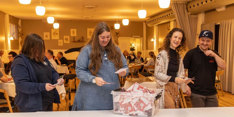 Foto: Her ser vi så nogle af de gode folk fra butikslivet i gang med at finde de respektive vindere i deres butikkers juleshoppingkonkurrence. Foto: Jim Hoff