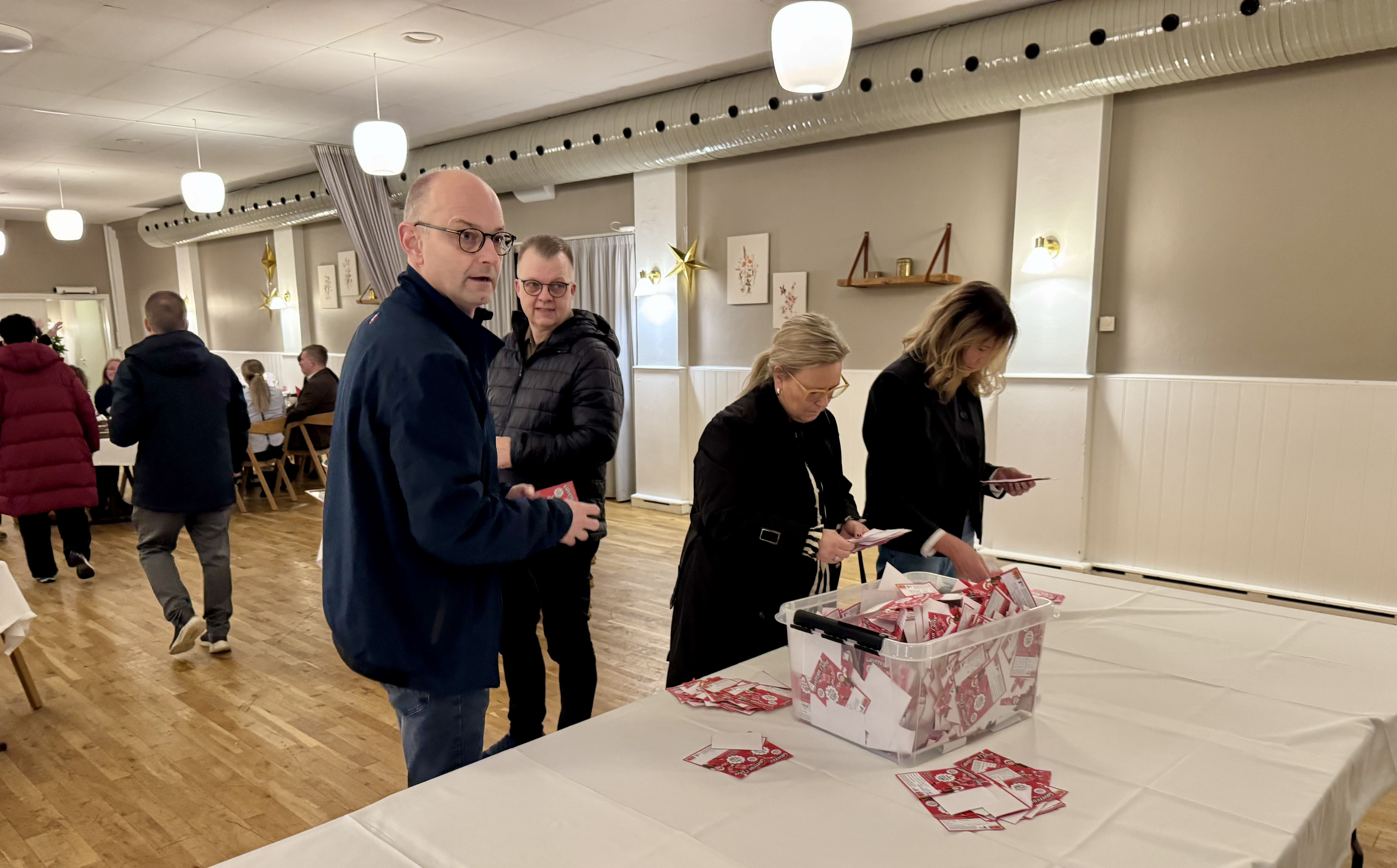 Derefter kom vi til dagens næste højdepunkt, hvor man skulle finde vinderen af de 5.000 kroner i dette års juleshoppingkonkurrence. Her får den heldige vinder 5.000 kroner at handle for i butikkerne i Give, og det sker i selskab med Hanne Lund og journalisten fra Vores LokalAvis – som efterfølgende laver en artikel om denne fine begivenhed.