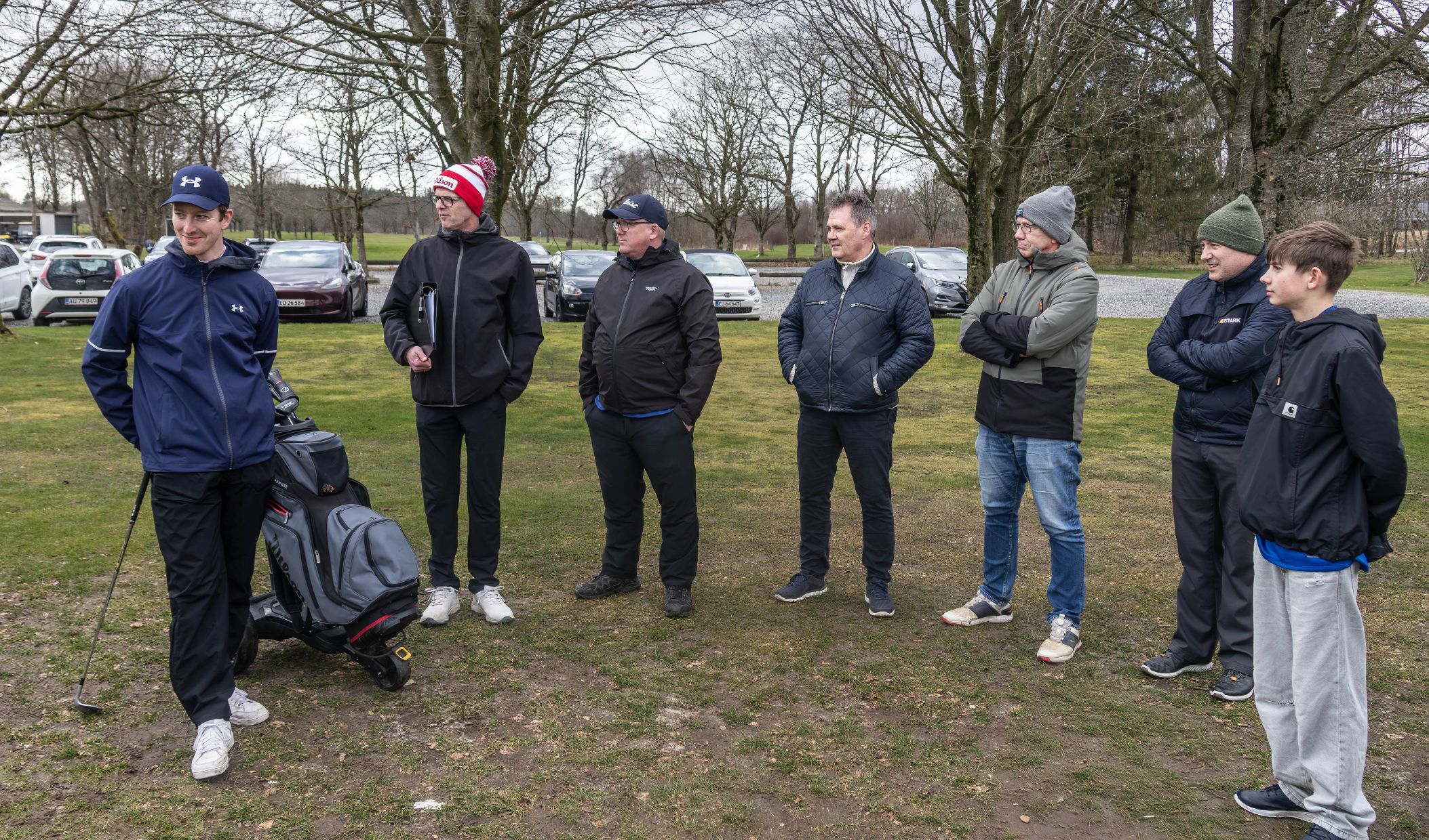 Foto: Mandag den 30. marts startede Give Golfklubs juniorafdeling op med træningen, og her har vi de på dagen fremmødte trænere og spillere. Foto: Jim Hoff