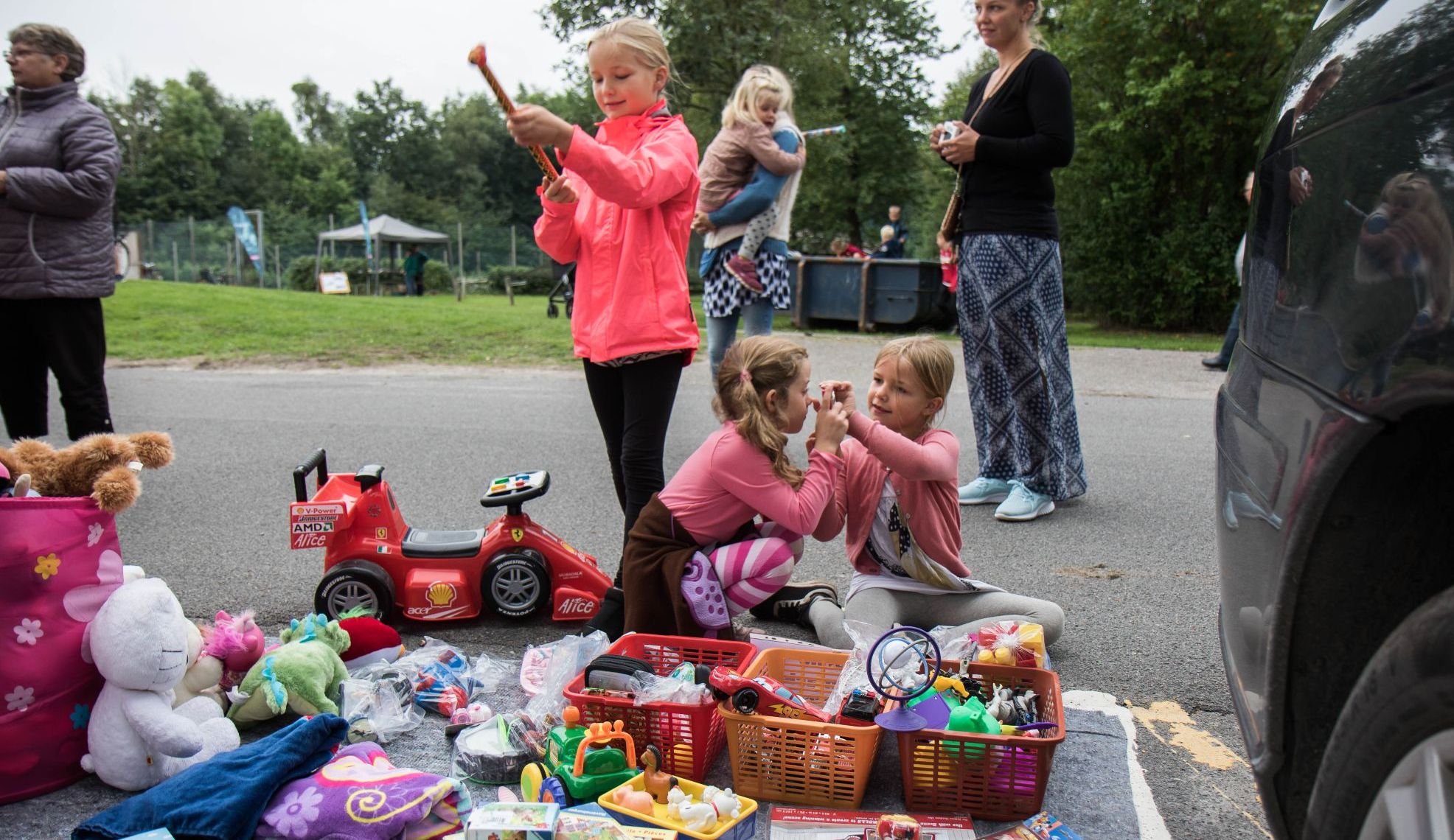 Således godt rustede med fyldte maver og velsmurte stemmebånd kan borgerne kaste sig over det store marked, der åbner klokken 9.00. Her kan man købe alkens mulige ting og sager, og det er også en fin lejlighed til at få tømt lidt ud i de overflødige legesager i børneværelset. Det koster gratis at have en bod her på p-pladsen.