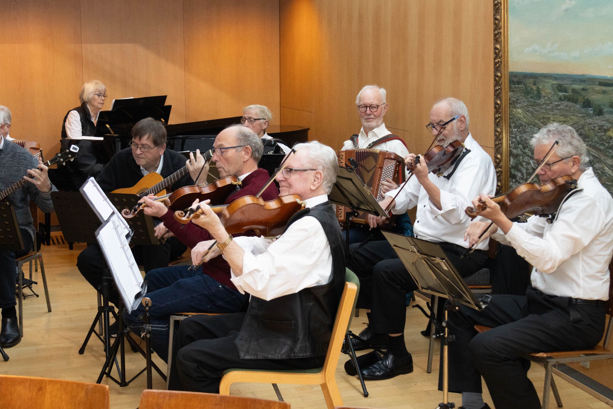 DET GODE LIV: Museum Give summede af liv, glade dage og hyggelig folkemusik tirsdag formiddag den 19. november. Her var der inviteret til Seniormesse med Vejle Kommune og FrivilligCenter Give som udbydere og Museum Give som værter.