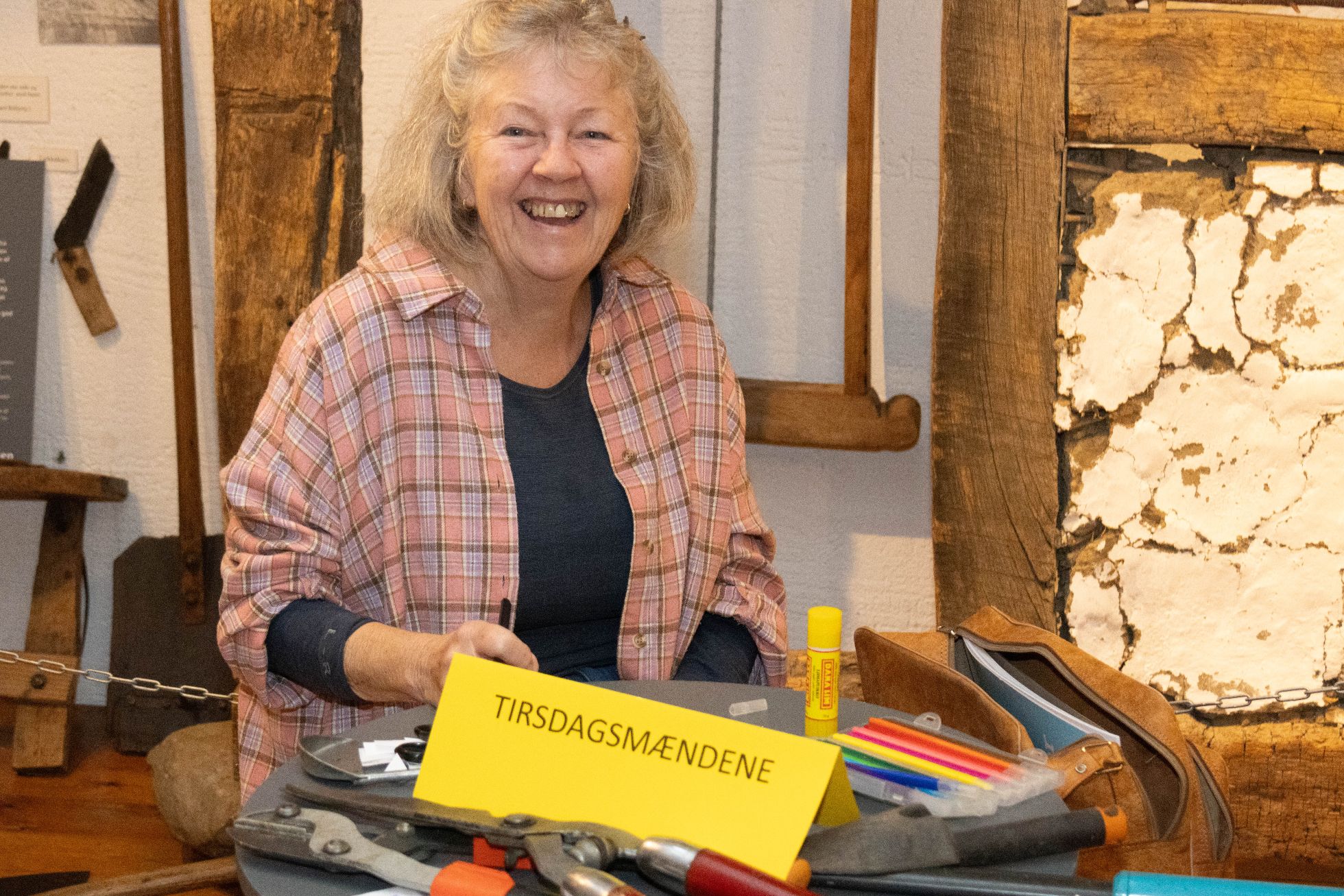 En lang række foreninger havde taget plads på museet, hvor man så kunne komme rundt og få en masse info.Her er det Tirsdagsmændene, der er flot repræsenteret af en denne friske dame. Foto: Jim Hoff