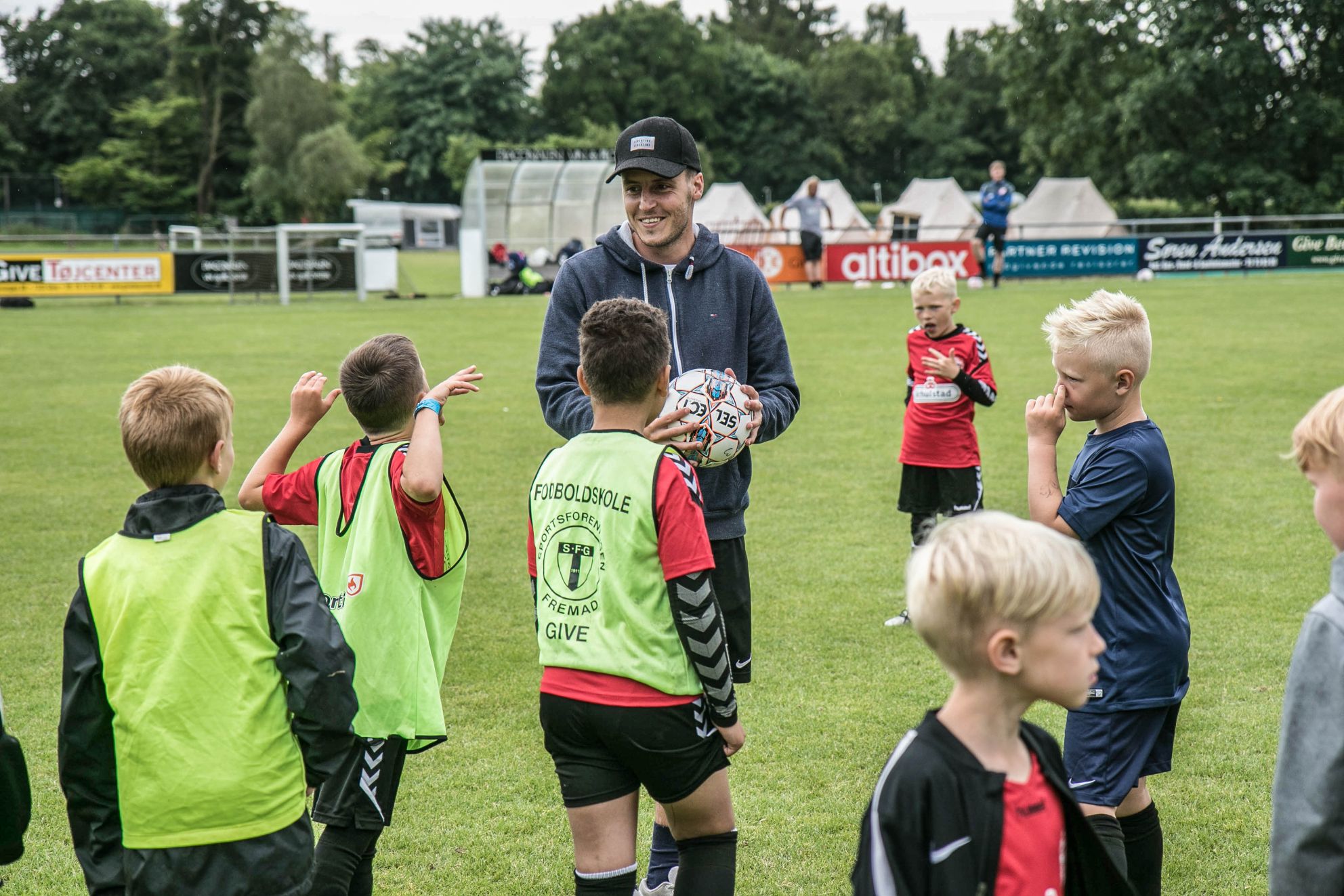 I 2017 dukkede Jeppe Andersen op på Give Fremads fodboldskole for at spille bold med de unge spillere.Foto: Jim Hoff