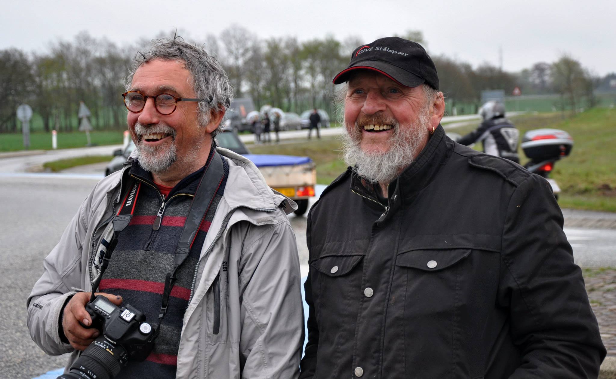 Her ser vi 2 af bagmændene bag Solhjulet, kunstner Bo Karberg (tv.) og Knud Buhl, da Solhjuet blev rejst tilbage i maj 2015. De udtrykte begge i deres taler stor stolthed over projektet. Foto: Jim Hoff