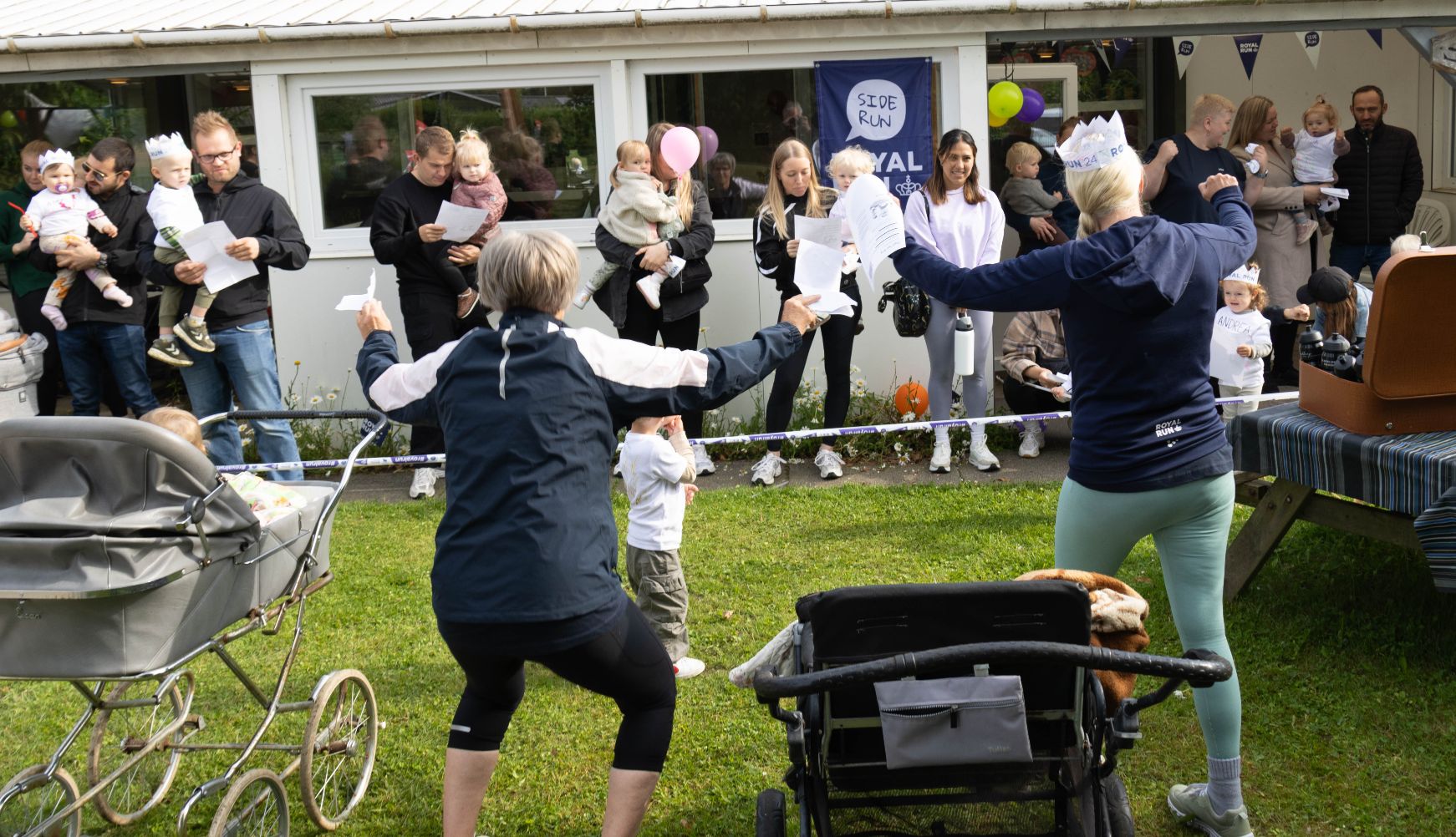 -Vi har lavet en løbe/gå-runde her på stedet på 110 meter, som vi skal rundt på nogle gange. Nogle går, nogle løber, andre sidder i klap- eller barnevogn, og det handler jo ikke om at løbe længst men om at have en hyggelig dag sammen med børnene og deres forældre, forklarer Birgit Smedegaard Marquart, der er en af de fire royale dagplejere bag dette fine koncept.