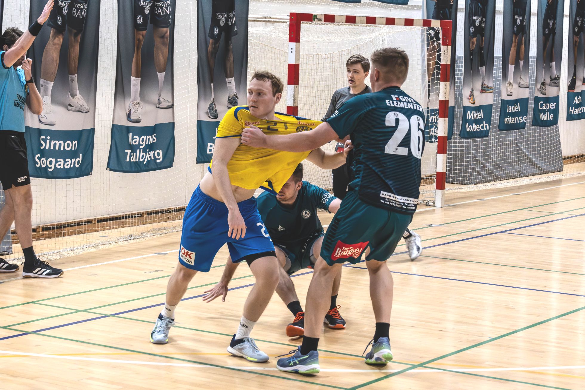 Der blev naturligvis givet og taget, men det blev aldrig en ond og svinsk kamp -tværtimod blev der disket op med en masse flot håndbold. Foto: Jim Hoff