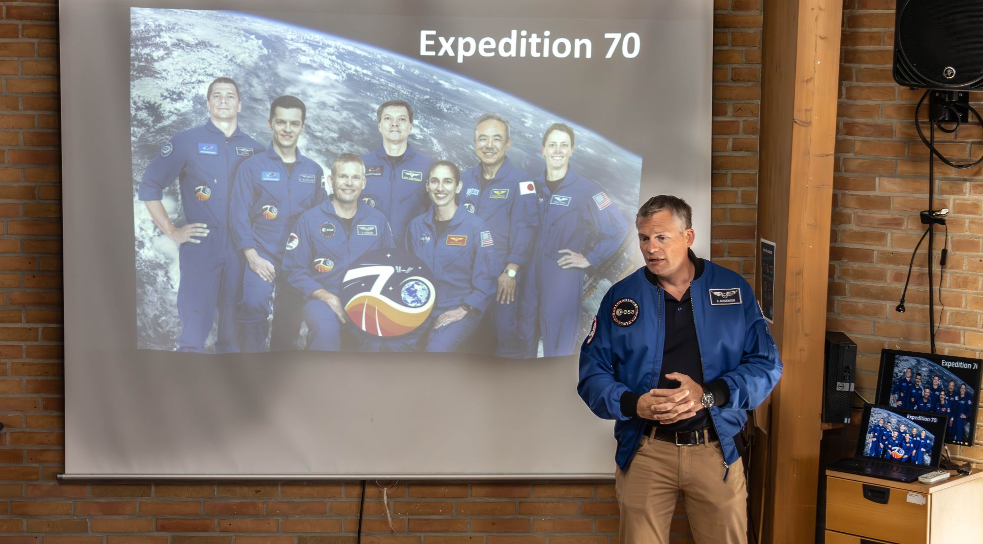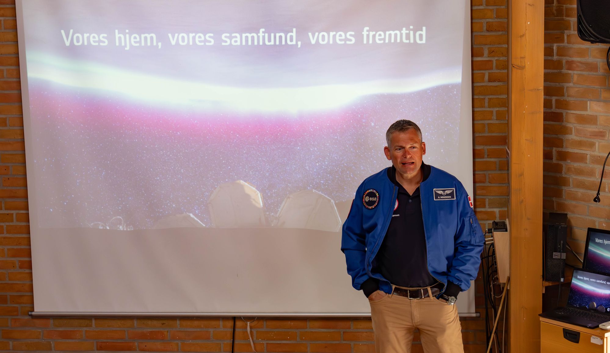 ESA står for European Space Agency, eller på jysk Den Europæiske Rumorganisation, og herren i den blå jakke var inden ringere end Andreas Mogensen, den verdensberømte danske astronaut, der i den grad har været med til at sætte Danmark på både verdenskortet og på kortet over universets uendelighed.