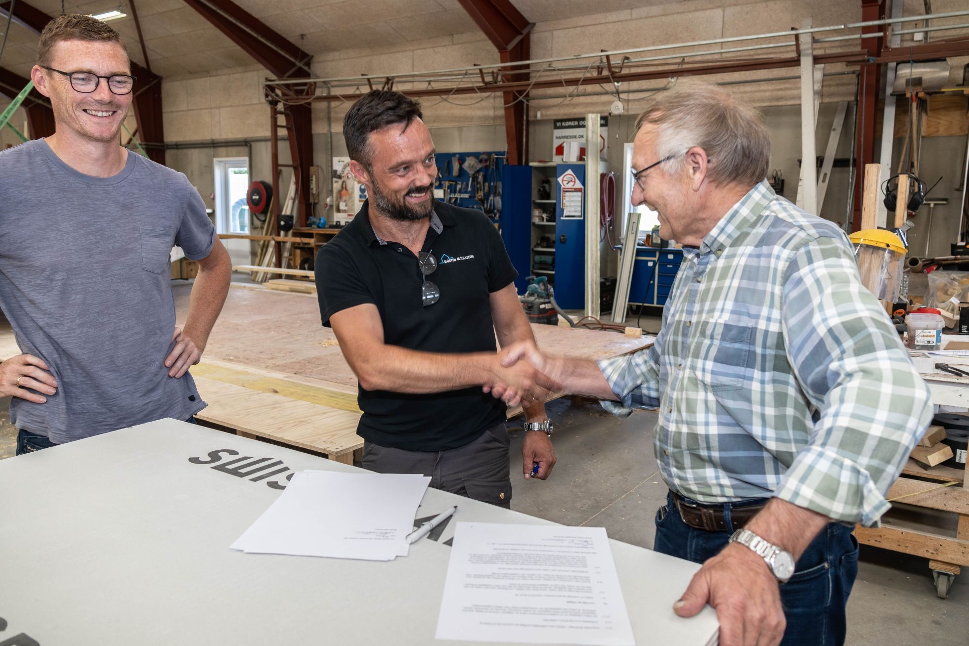 Så er papirerne officielt skrevet under, og Harresø Byggeforretning ejes hermed af Morten Michaelsen (i midten) og Ruben Laursen ( til venster). Foto: Jim Hoff