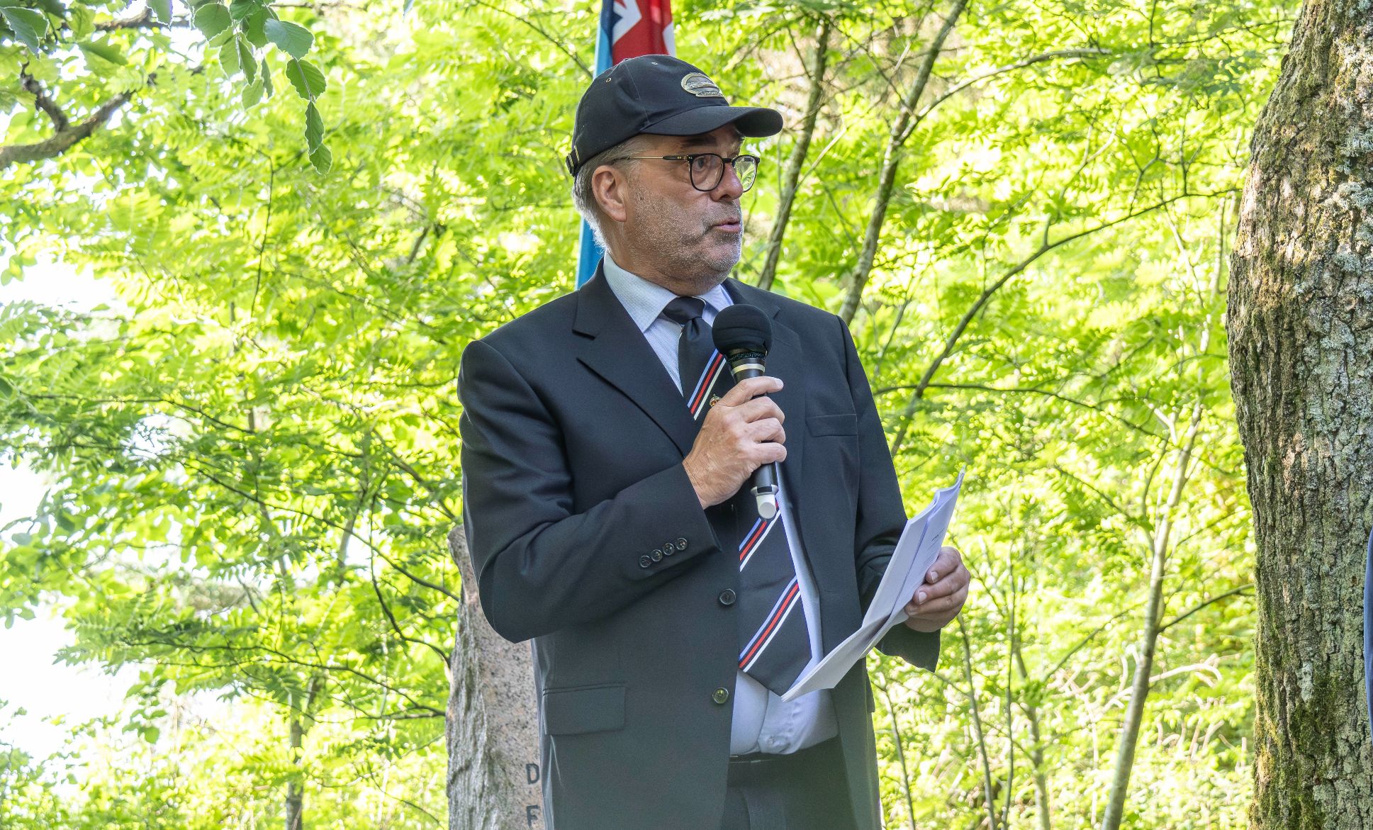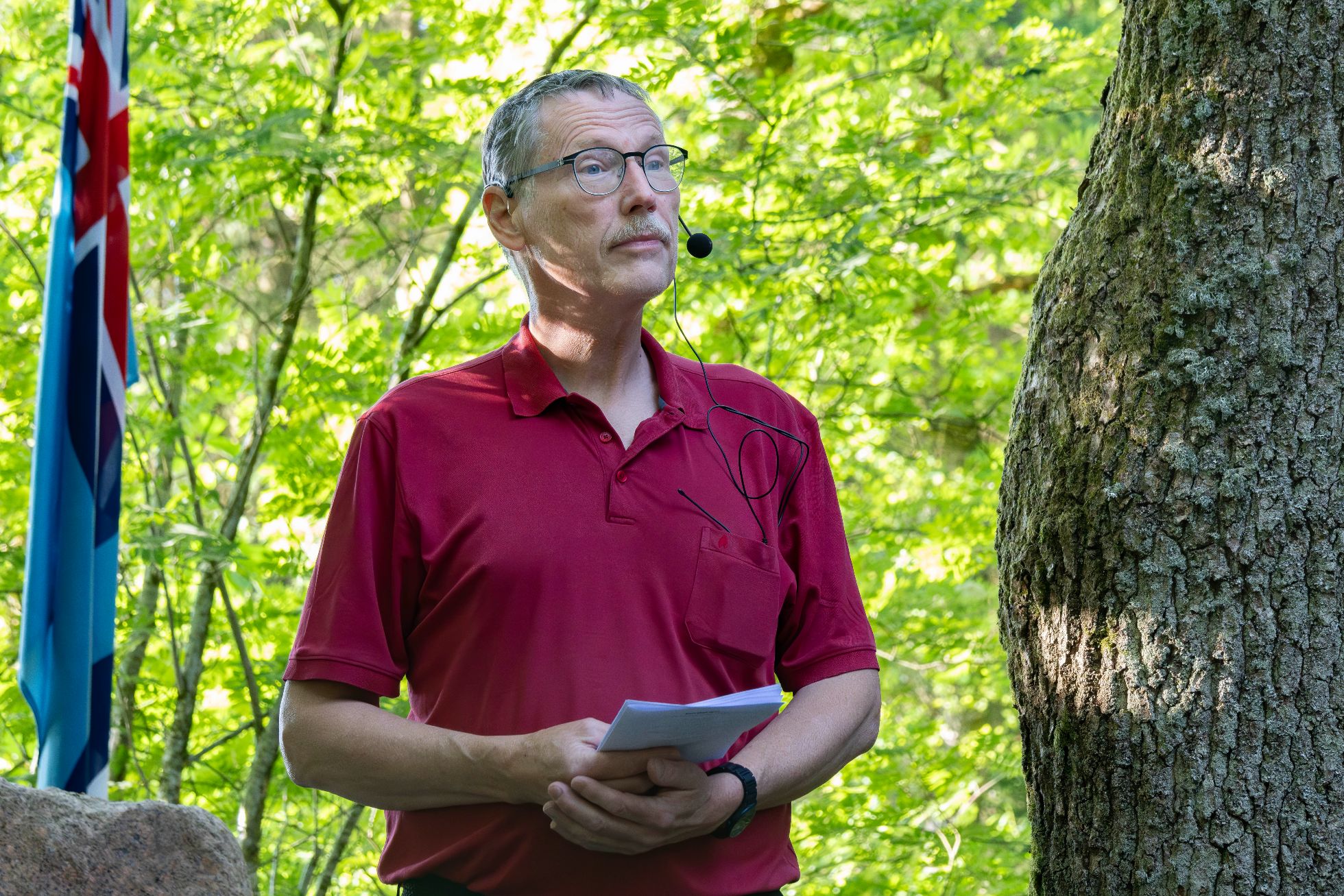 Lars Hansen fra 22. maj komiteen bød folk velkommen ved mindestenene i Vesterlund. Foto: Jim Hoff