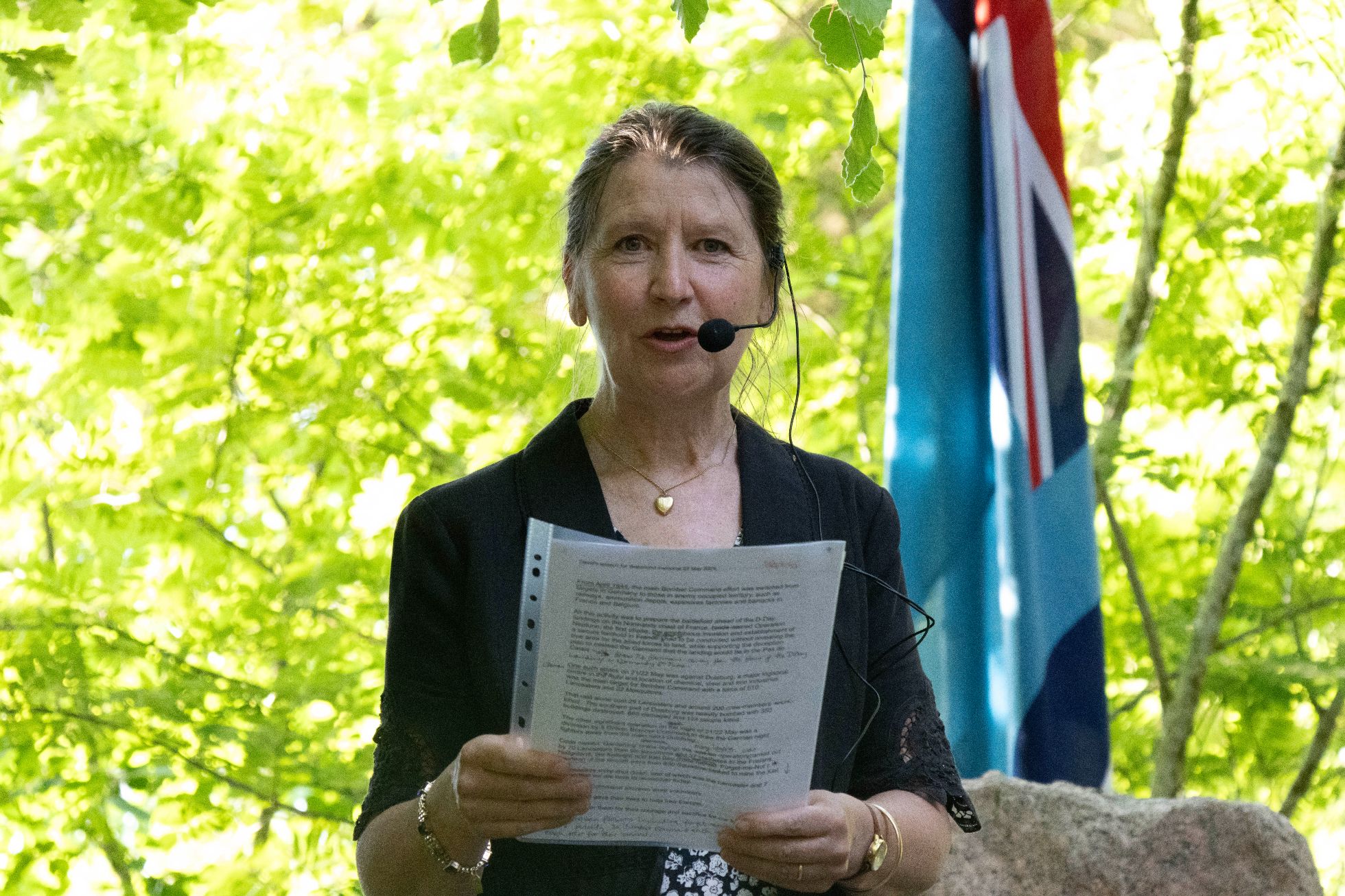 Jack Whitings barnebarn,David Whitings datter, Philippa Forsey, holdt en rigtig god tale, der beskrev hændelserne omkring nedskydningen af det engelske bombefly den 22. kag 1944. Foto: Jim Hoff