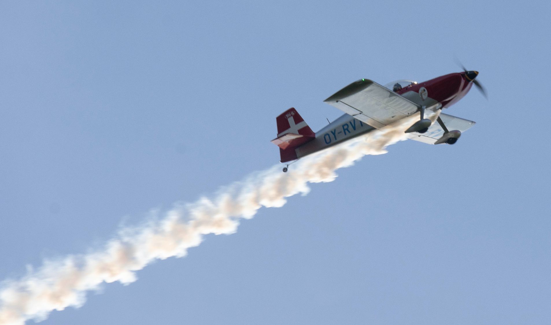 Og så skete der noget i det lokale luftrum. Hen over ceremonien fløj et RV8 fly med Thomas Schou Dam i cockpittet. Han lavede en række overflyvninger, hvoraf et par var med røgudslip. Meget stemningsfuldt og relevant i forhold til, hvad det var, man rent historisk ville italesætte denne smukke aften i Vesterlund ved RAF-mindestenene.