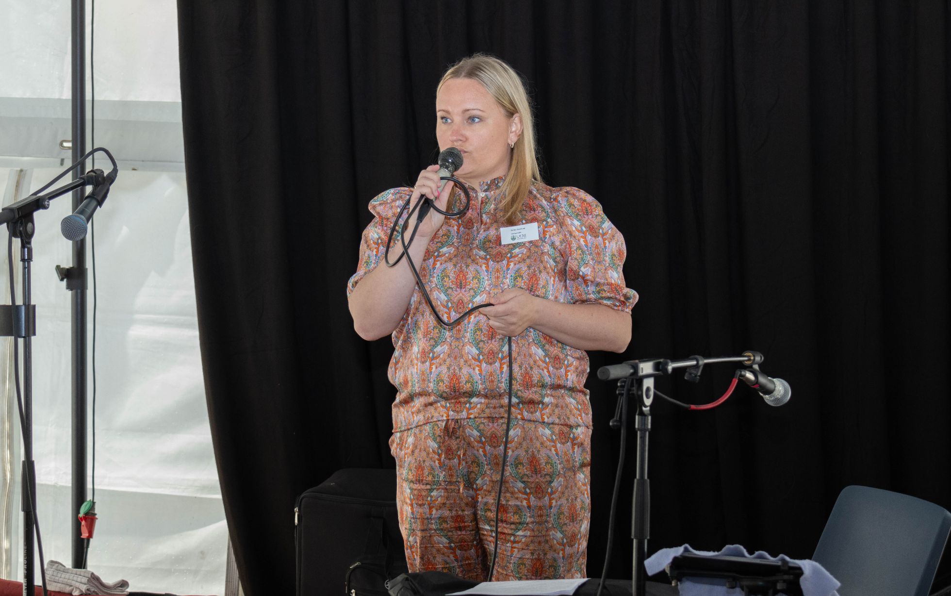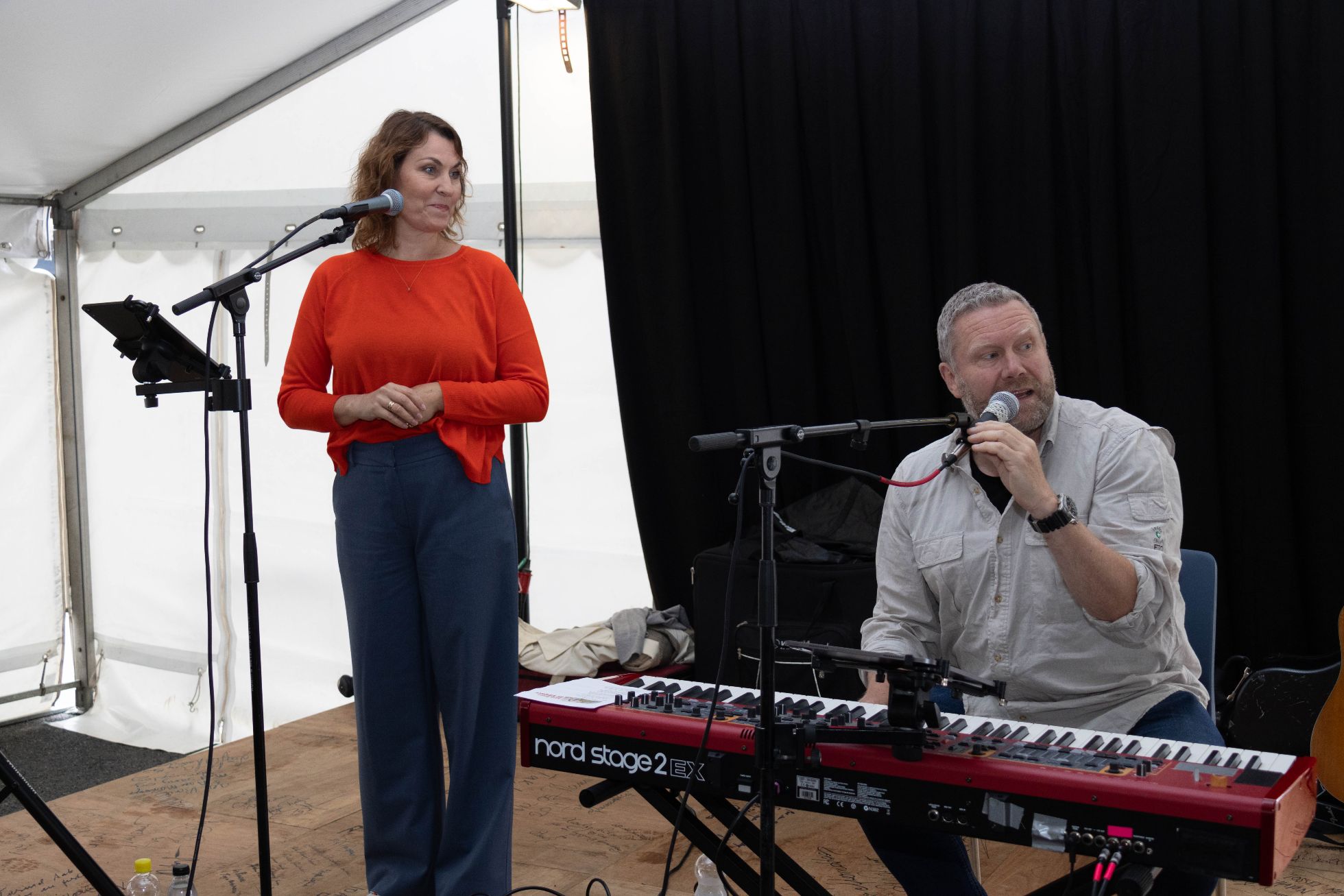 Dagen startede klokken 12.00, hvor festpladsen åbnede med forskellige aktiviteter, og klokken 13.30 startede den officielle del i festteltet. Her bød centerleder Carina Skærlund flokken velkommen.