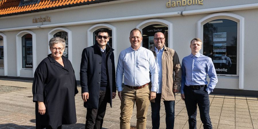 Foto: Det nye team danbolig kom på plads i 2025 og består nu af fra venstre Anette Knudsen, Marcus Østergaard, indehaver Lars Secher, Christian Christiansen og Tim Erichsen. Og det nye team kan se tilbage på et rigtig flot 2025 med rekordsalg. Foto: Jim Hoff