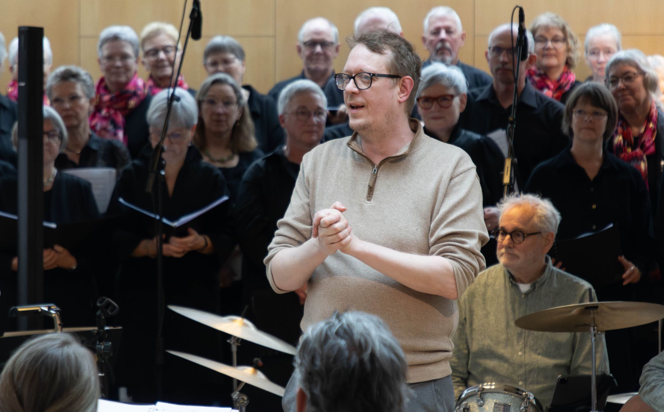-Der er i dag tale om en verdenspremiere for denne sang, lød det med et stort smil fra Mads Struwe Jeppesen, inden han overlod scenen og de musikalske gerninger til de 73 sangere/musikere.