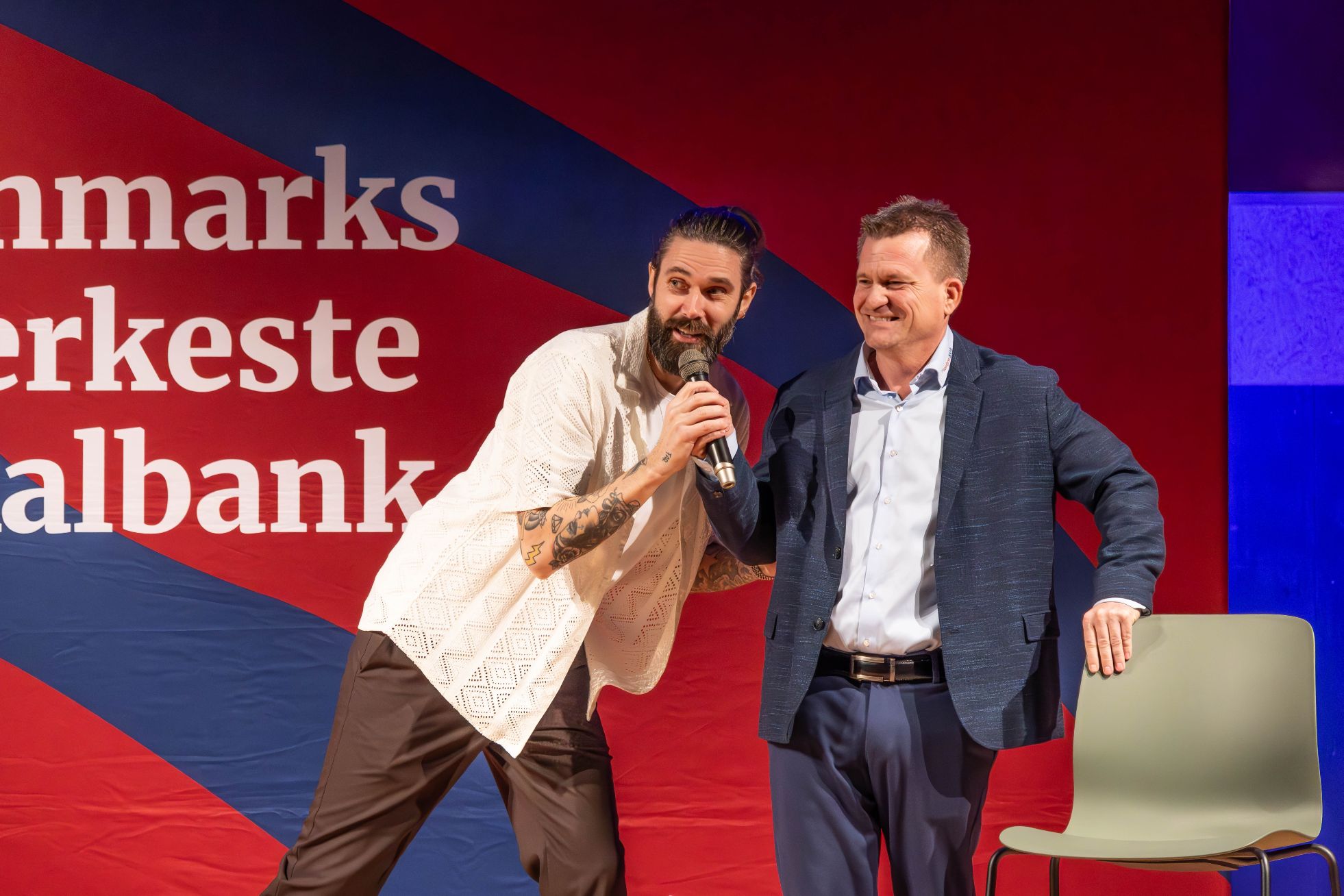 -Det er første gang, at vi er fem lokale banker der går sammen og et kundearrangement, og bedømt ud af, hvor godt det gik i aften og hvor tilfredse og glade publikum var, så bliver det bestemt ikke sidste gang, at vi inviterer ind til sådan en større event her. Allerede efter 4 timer var alle billetter væk her i Give, og generelt var der så kæmpestor interesse for showet, at folk måtte på venteliste. Så virkelig en fantastisk opbakning, hvilket vi er rigtig glade for, siger Lars Bodholdt, der er filialdirektør i Giveafdelingen.