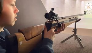 Efter4 ceremonien ved kirken var der ’Static display’, som er en fremvisning af materiel både fra Niels Kjeldsen Eskadronen, hvor man var på plads med en moderne kampvognseskadron, samt foreningen Jydske Landsoldater med materiel fra 1864. Her en ung dame, der giver den som riffelskytte. Foto: Jim Hoff