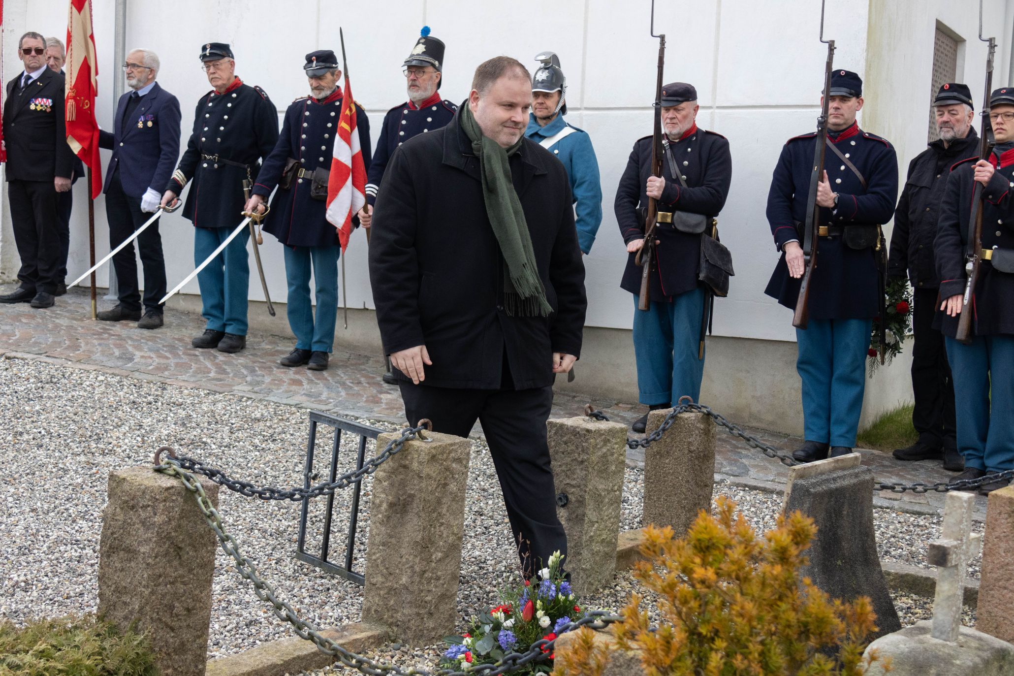 Derefter lagde han også en mindekrans til ære for Niels Kjeldsen, hvorefter der blev afholdt et minuts stilhed.