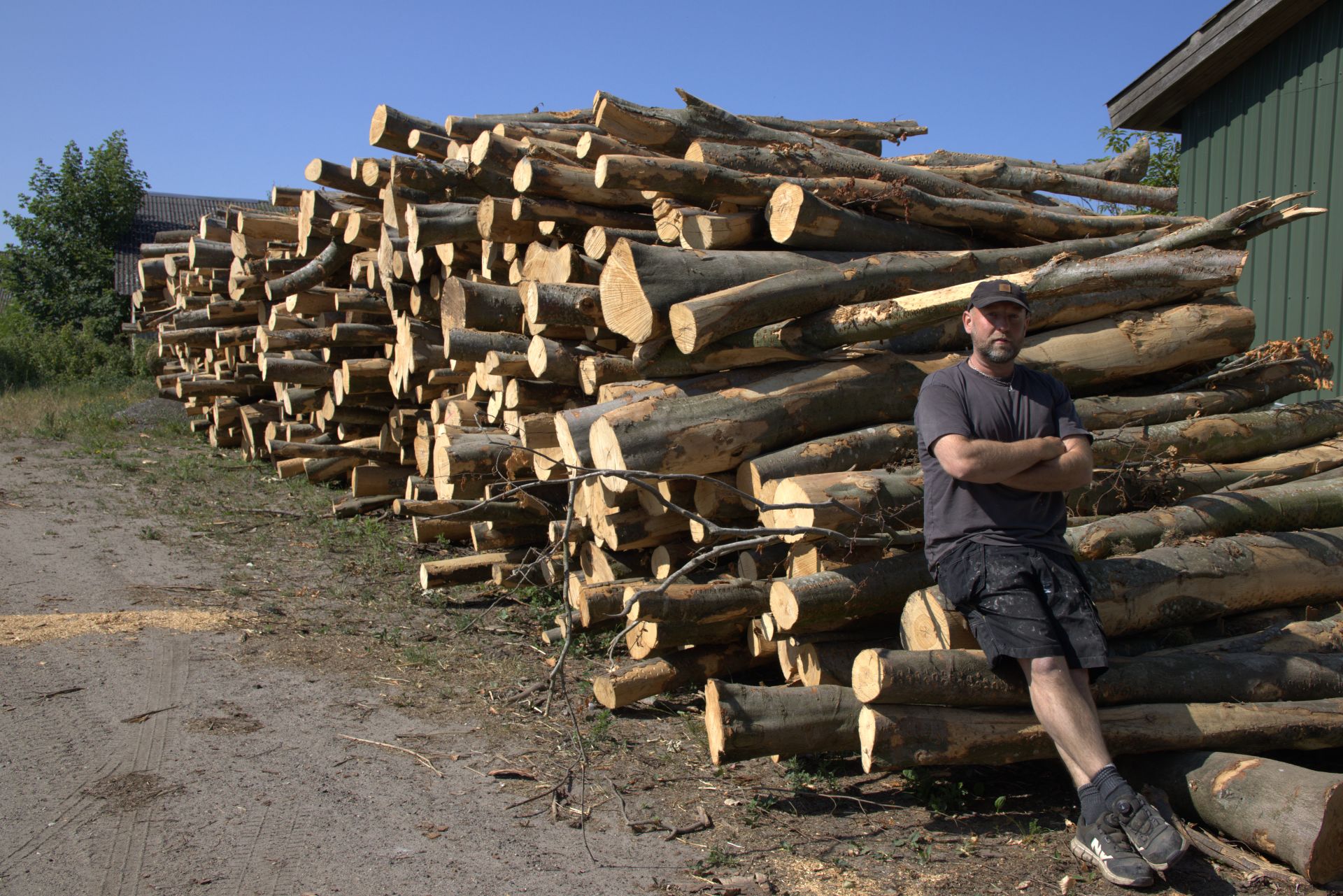 I sommers fik Thomas Nørregård leveret 145 kubikmeter bøgetræ fra Give Lystanlæg, da der blev tyndet ud i bøgeskoven. Foto: Jim Hoff