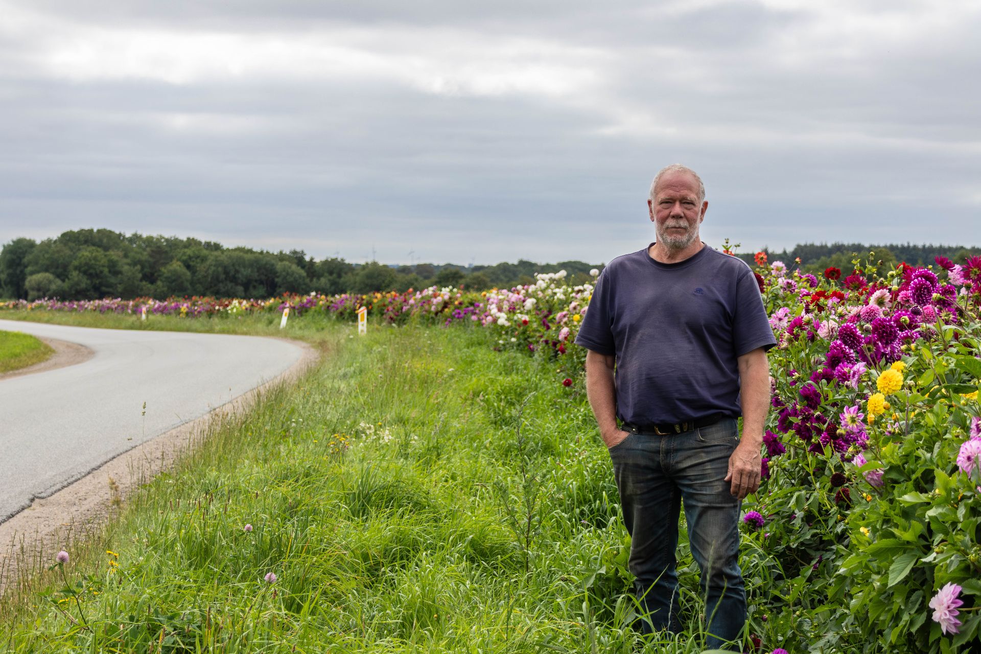- Og det er bare helt i orden. Hvis jeg en dag skule køre forbi her på Brunbjergvej, og der holder 20 biler, hvor folk er ude at plukke georginer, så vil jeg da blive henrykt. For det første er der rigeligt at tage af, for det andet er det fint, at der trimmes lidt i blomsterne. Så sætter de nye skud og blomstrer igen, og for det tredje er det bare dejligt, hvis mine georginer kan gøre glæde hos en masse andre mennesker, lyder det gavmildt fra Uffe.