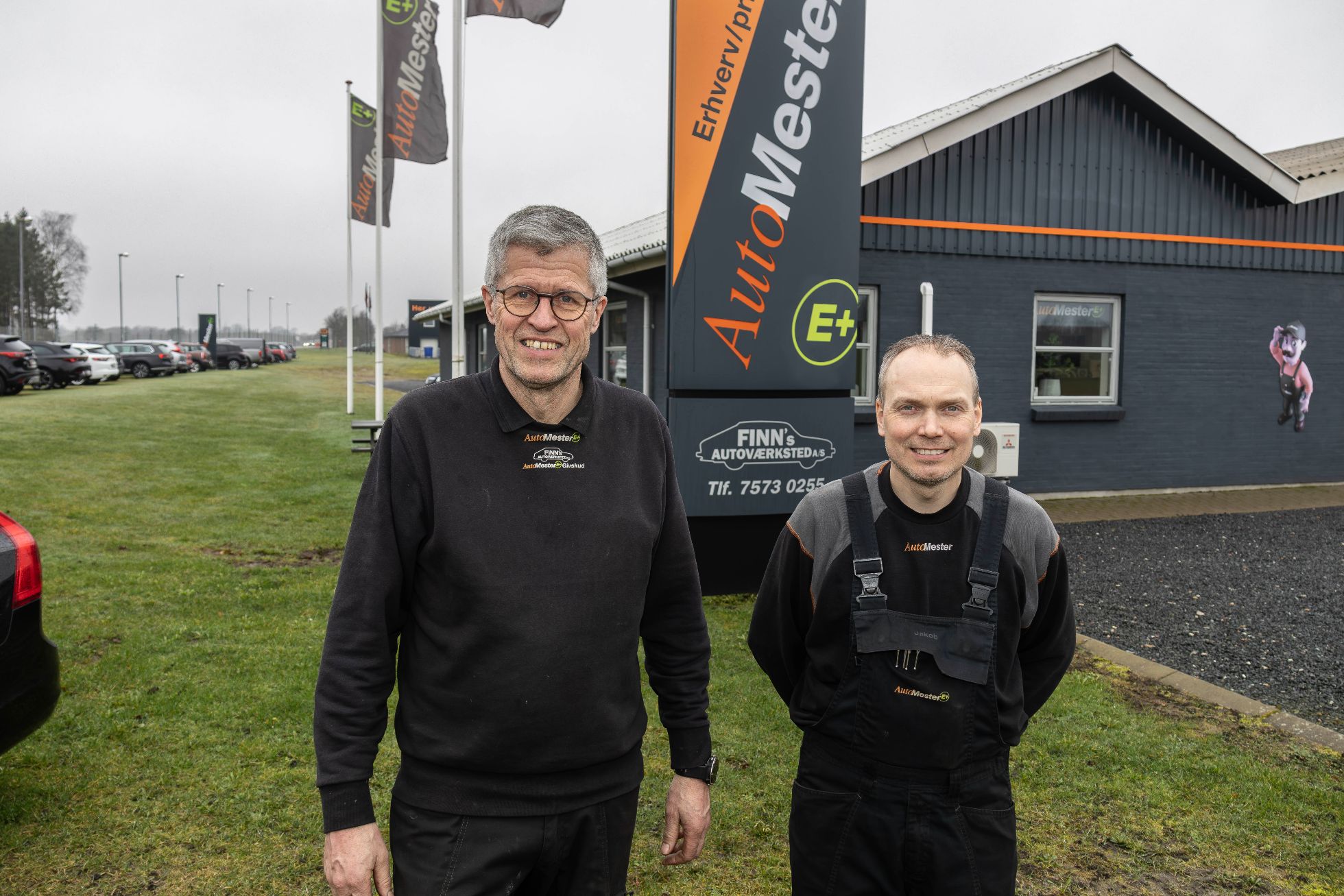 Indehaver Finn Hoffmann (tv.) er rigtig glad for, at han i to omgange beholdt Jakob Jensen på værkstedet. Her han en kompetent, kvik og ansvarsfuld medarbejder på 25. år. Foto: Jim Hoff